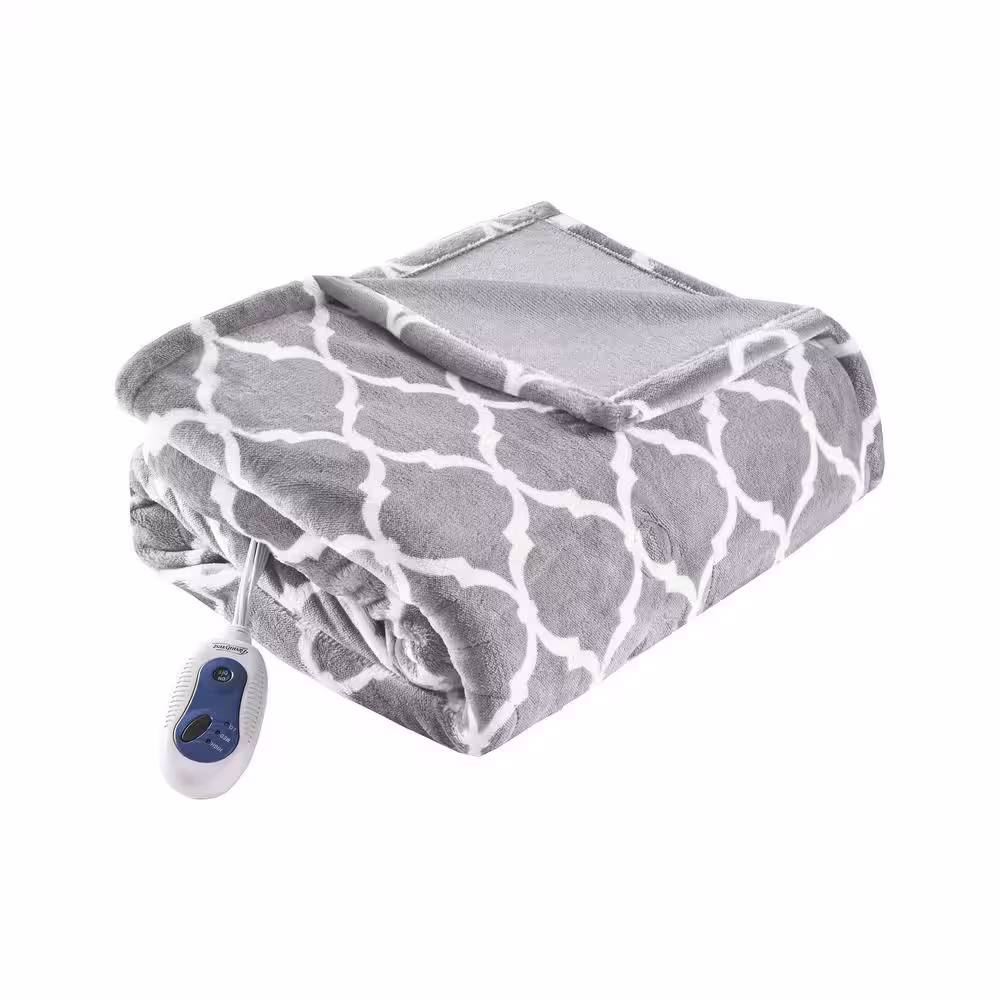 Beautyrest Heated Ogee Grey 60 in. x 70 in. Throw