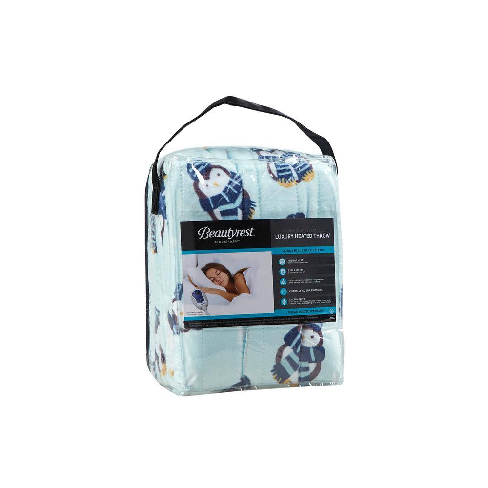 • Beautyrest Overd Plush Aqua Penguins 60 in. x 70 in. Printed Heated Throw