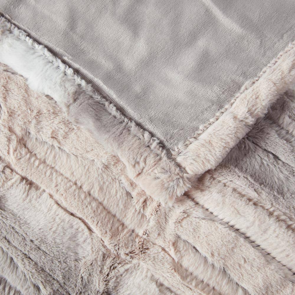 Beautyrest Marselle Blush/Grey 50 in. x 70 in. Oversized Faux Fur Heated Throw