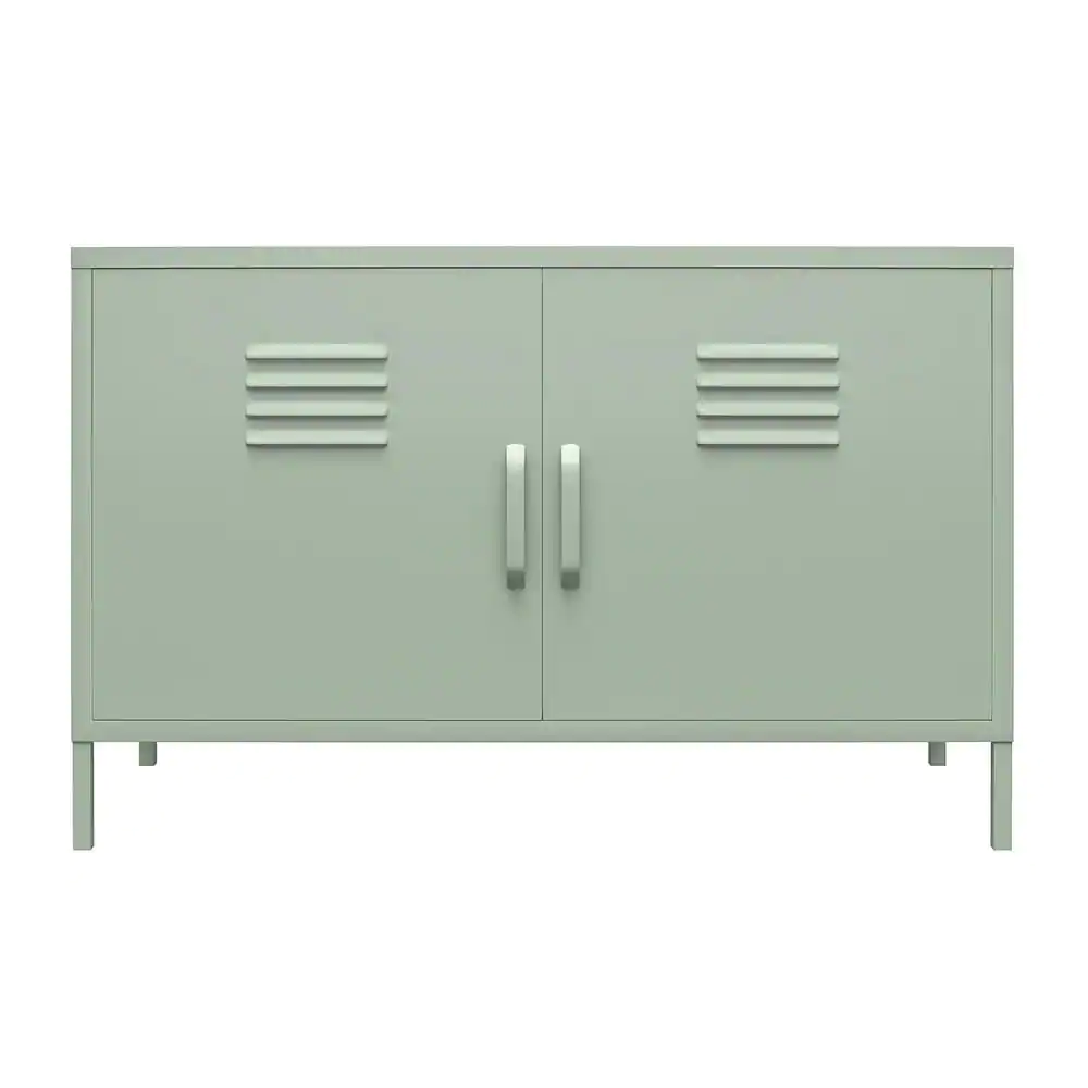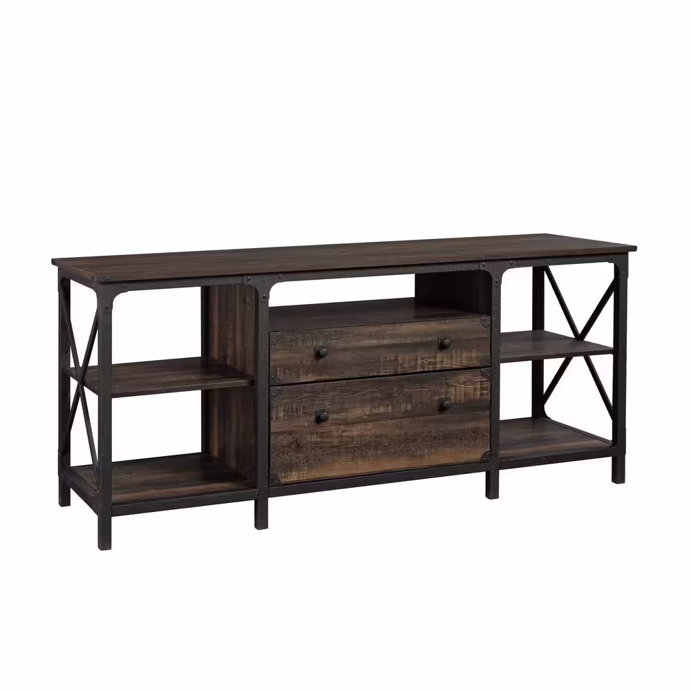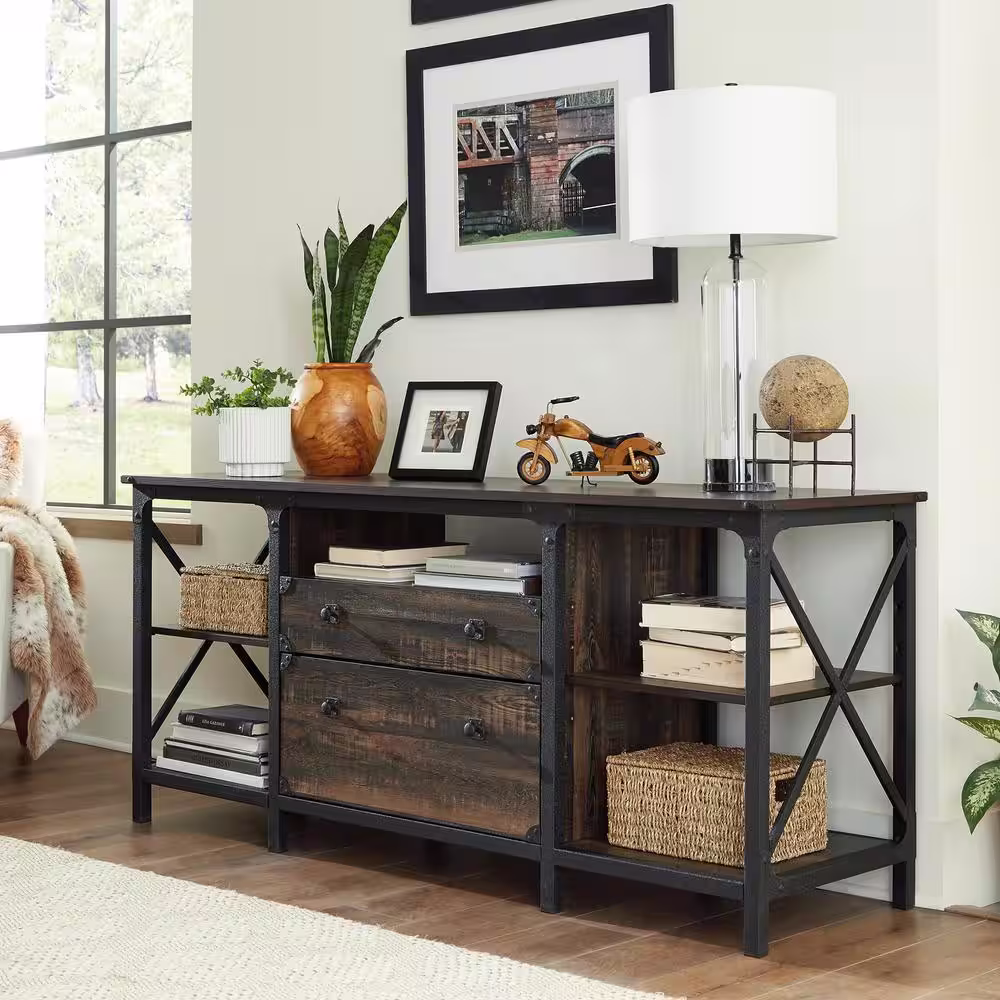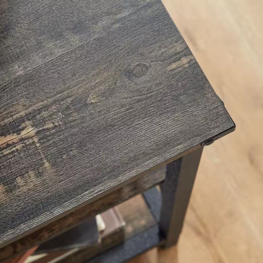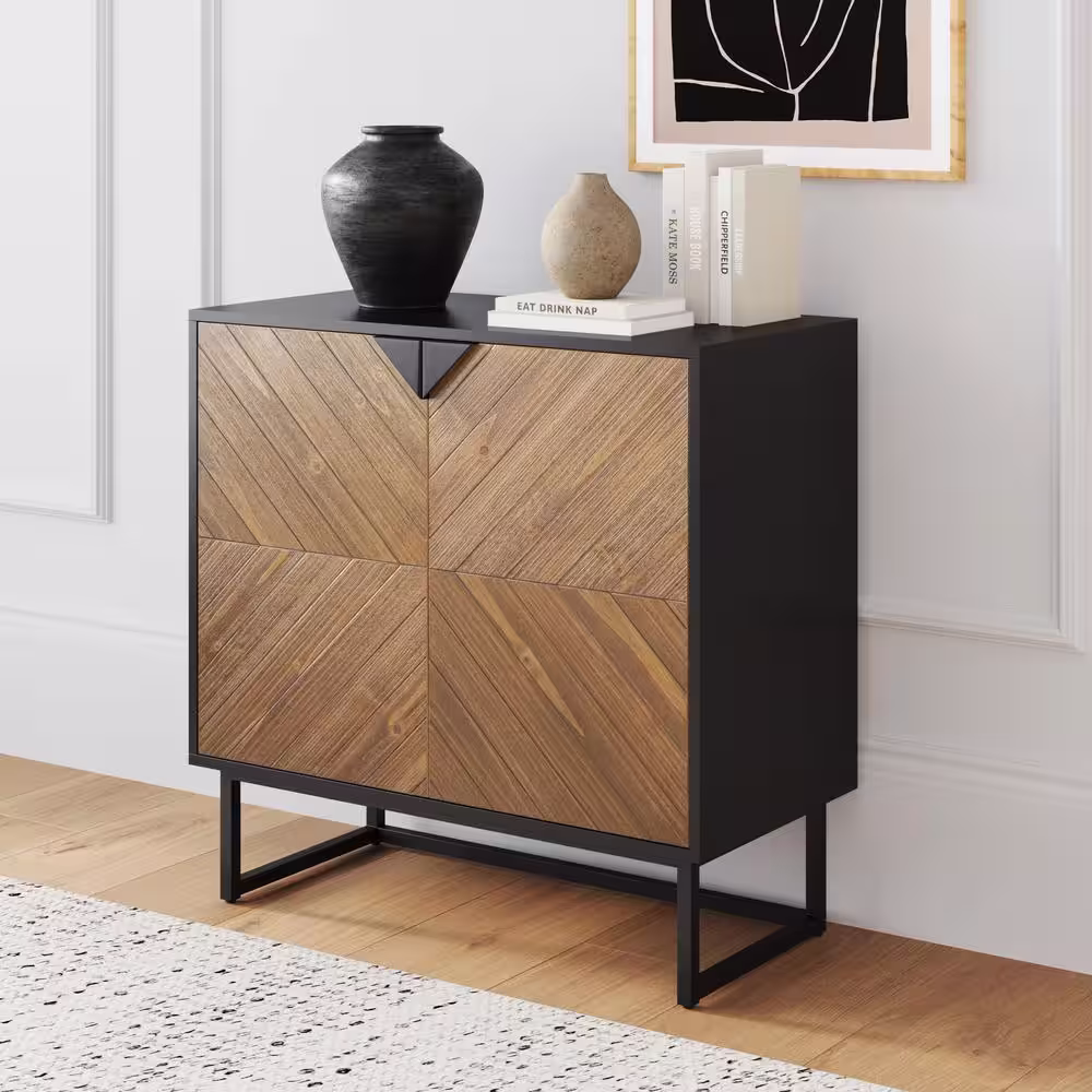 Nathan James Enloe Brushed Fir Rustic Doors Black Metal Frame Base Modern Accent Storage Cabinet for Entryway
