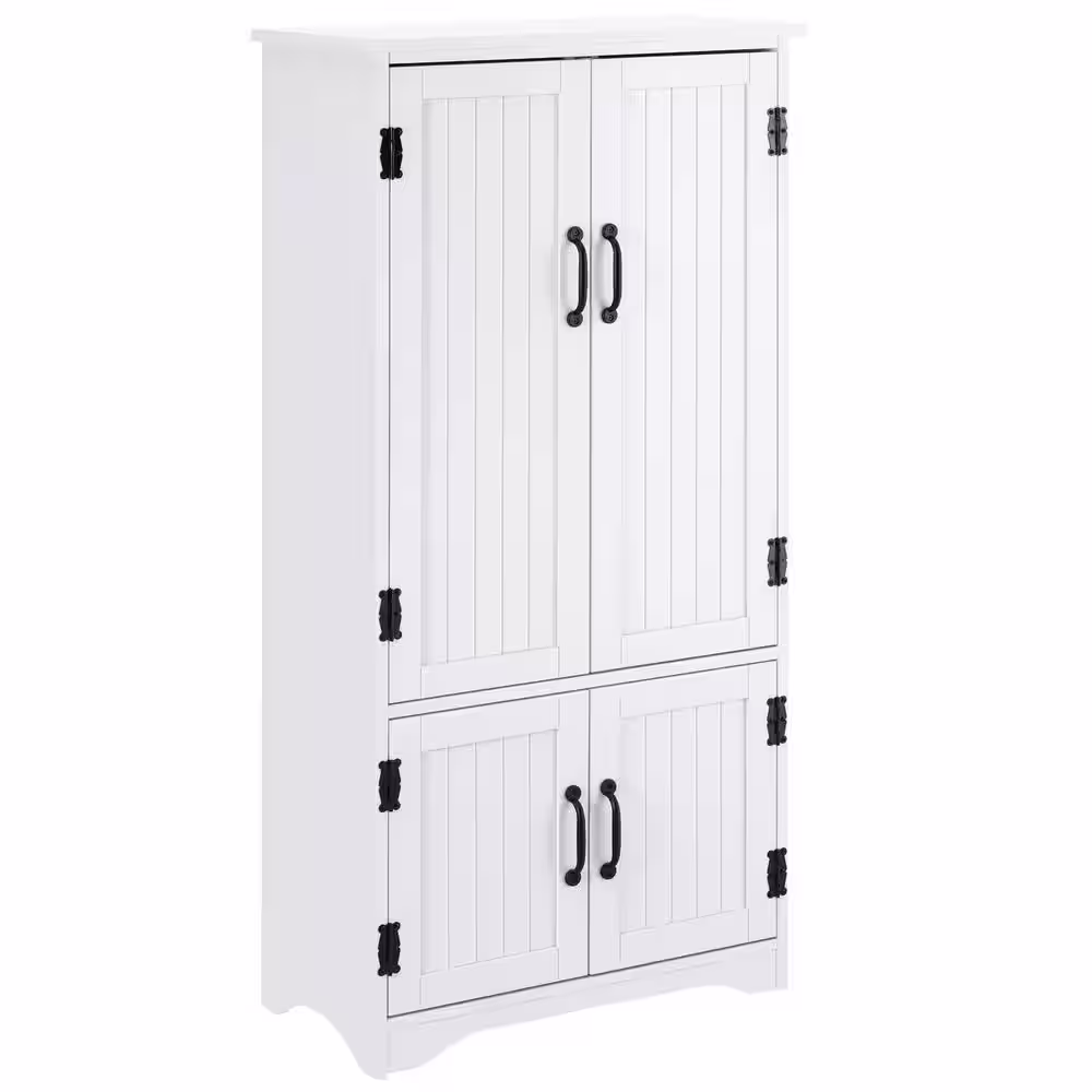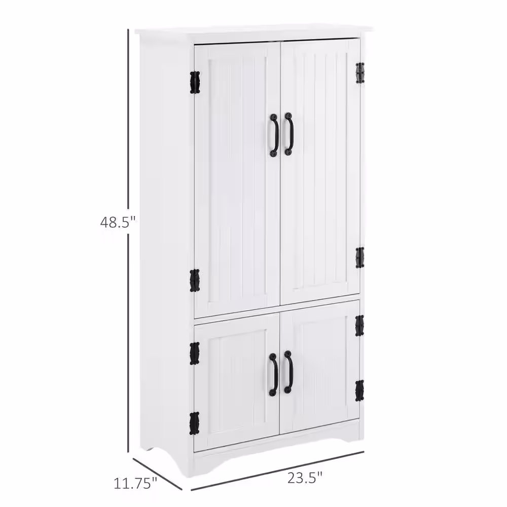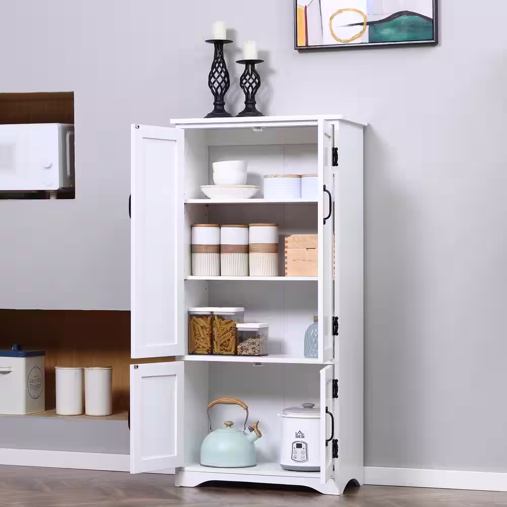 HOMCOM White Accent Freestanding Kitchen Pantry Storage Cabinet with Adjustable Shelves