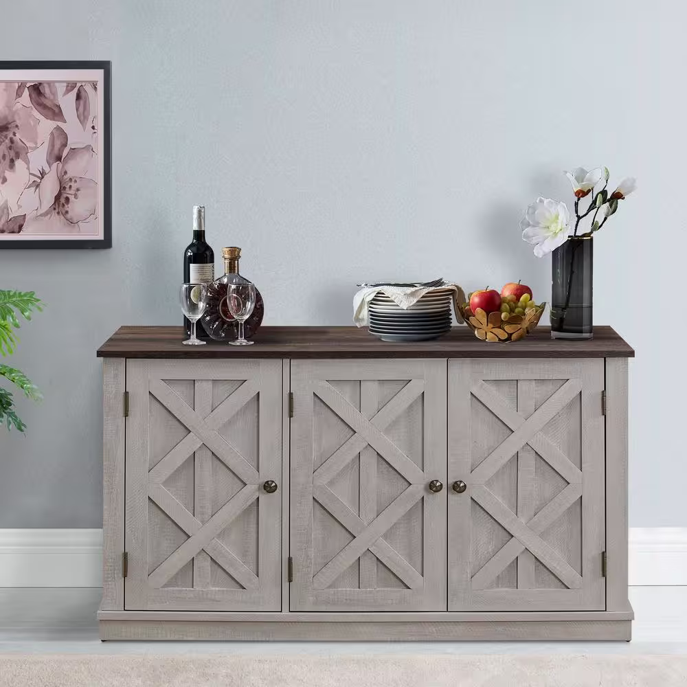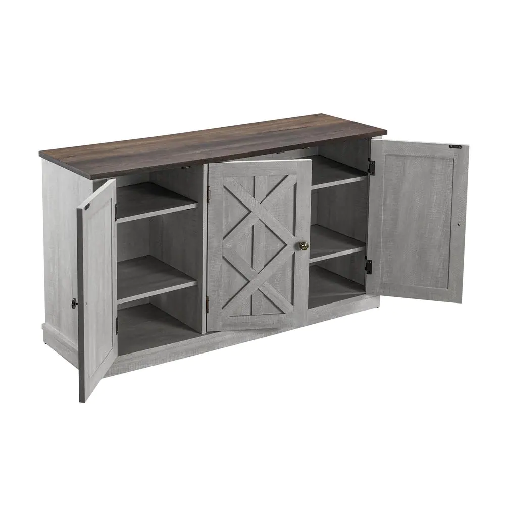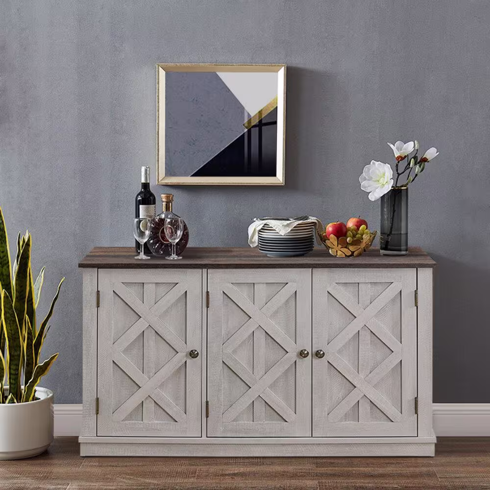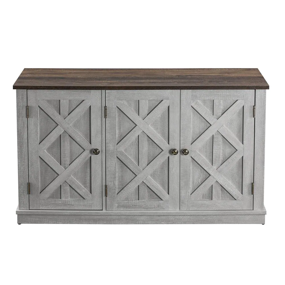 None 48 in. 3-Door Saw Cut-Off White Sideboard Buffet Table Accent Cabinet
