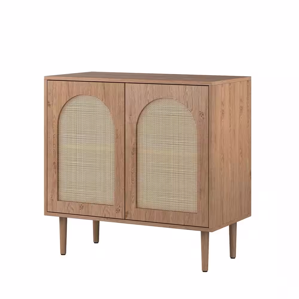 JAYDEN CREATION Roderick Oak 30.2 in. Tall Plus 2-Door Accent Cabinet with Wood Legs