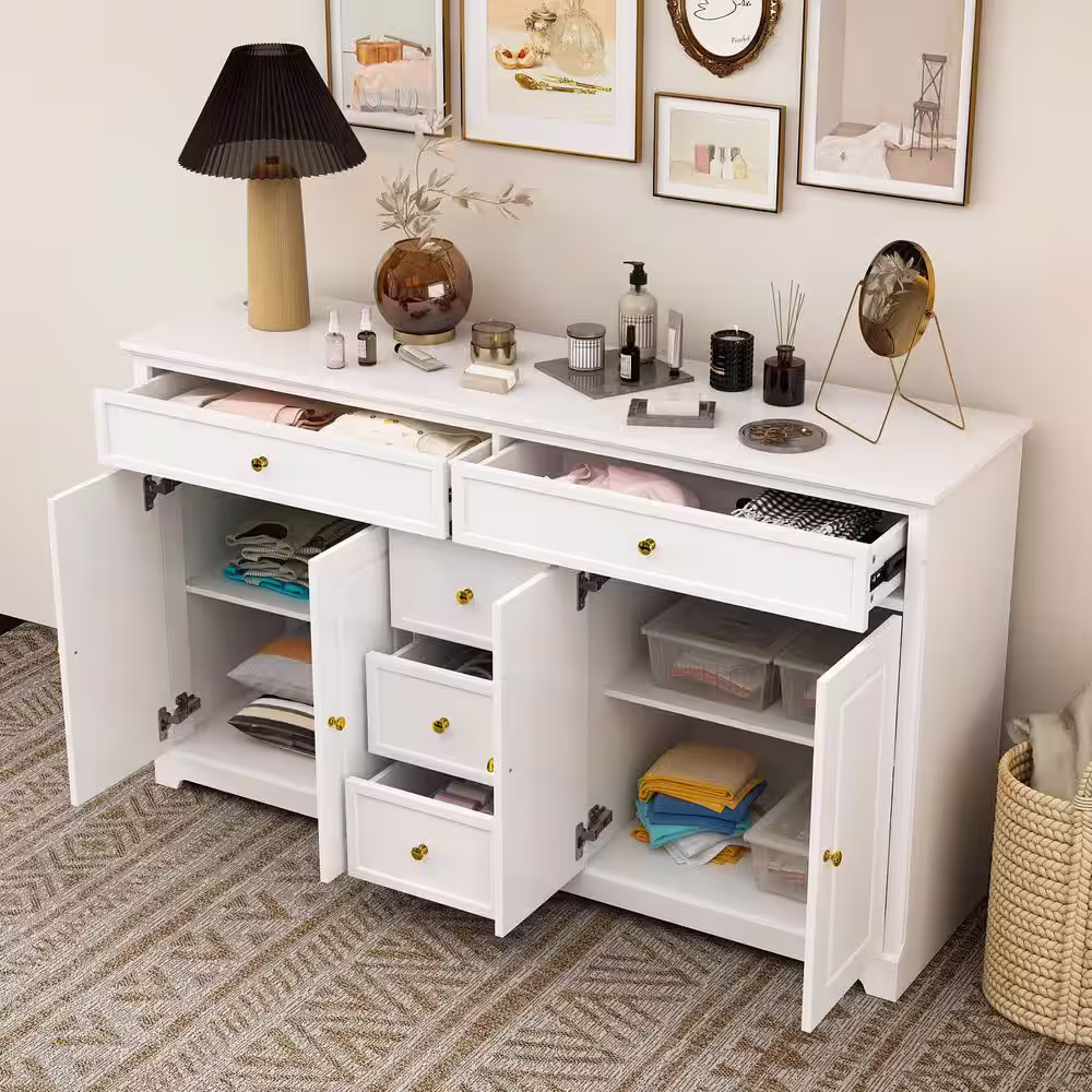 None White Wooden Accent Storage Cabinet with Multi-function, 59.1 in W. X 33.5 in H. X 15.7 in D.