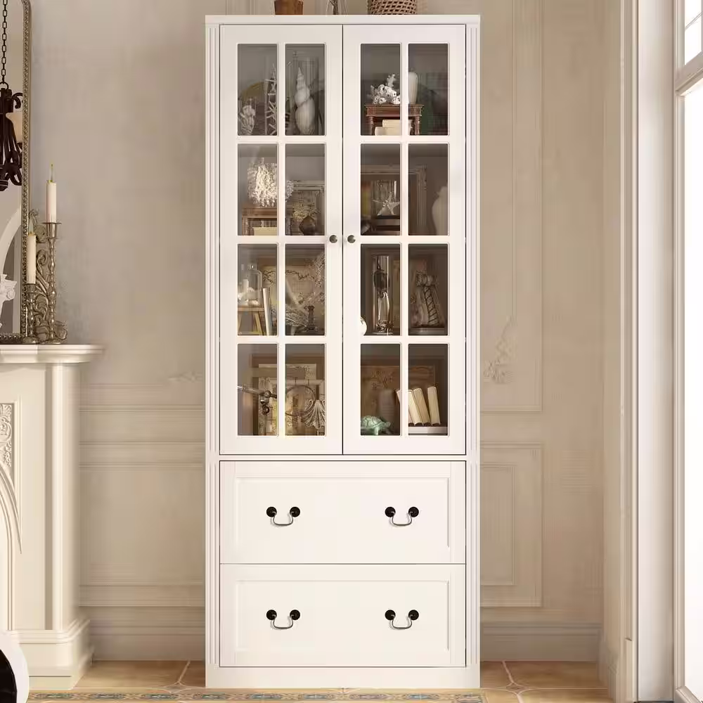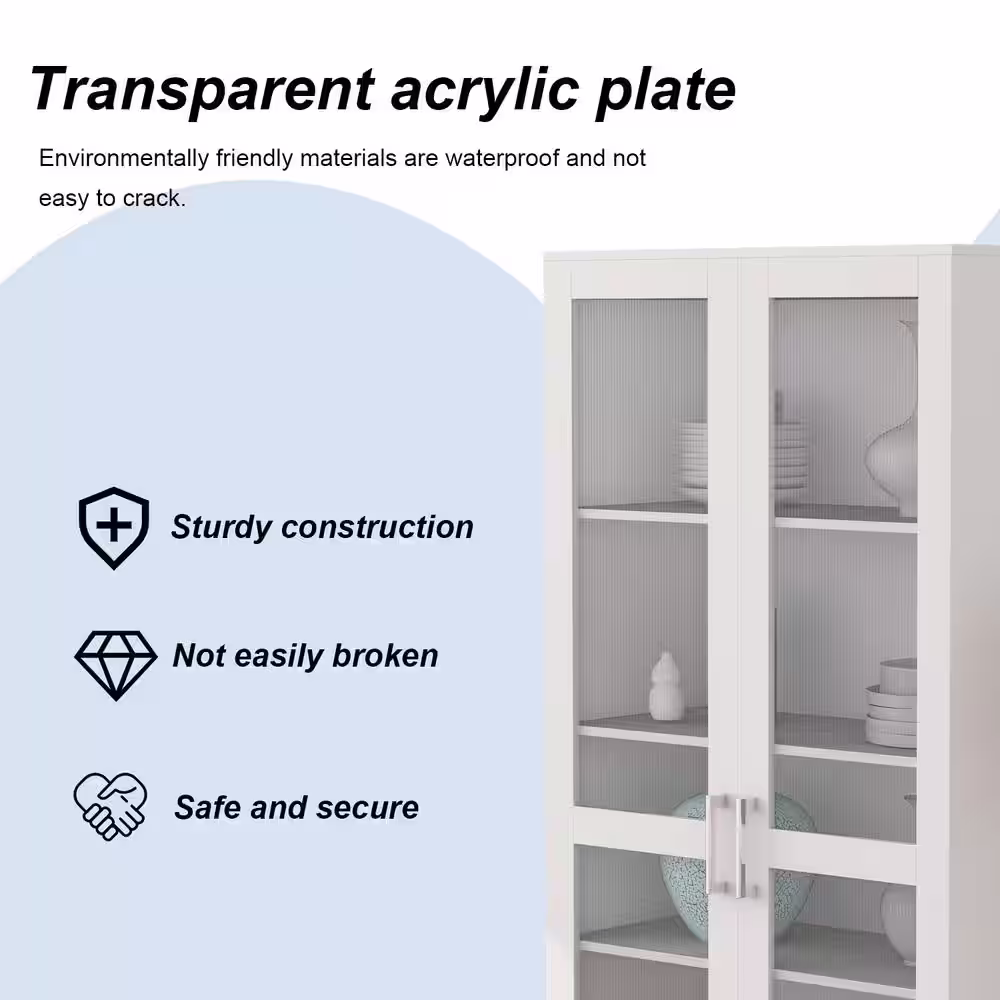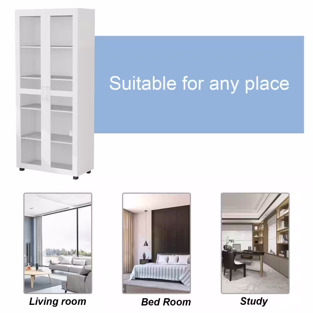 FUFU&GAGA 72 in. H White Wood 2-Door Accent Cabinet with 4-Tier Shelves Kitchen Pantry Cupboard Storage Cabinet