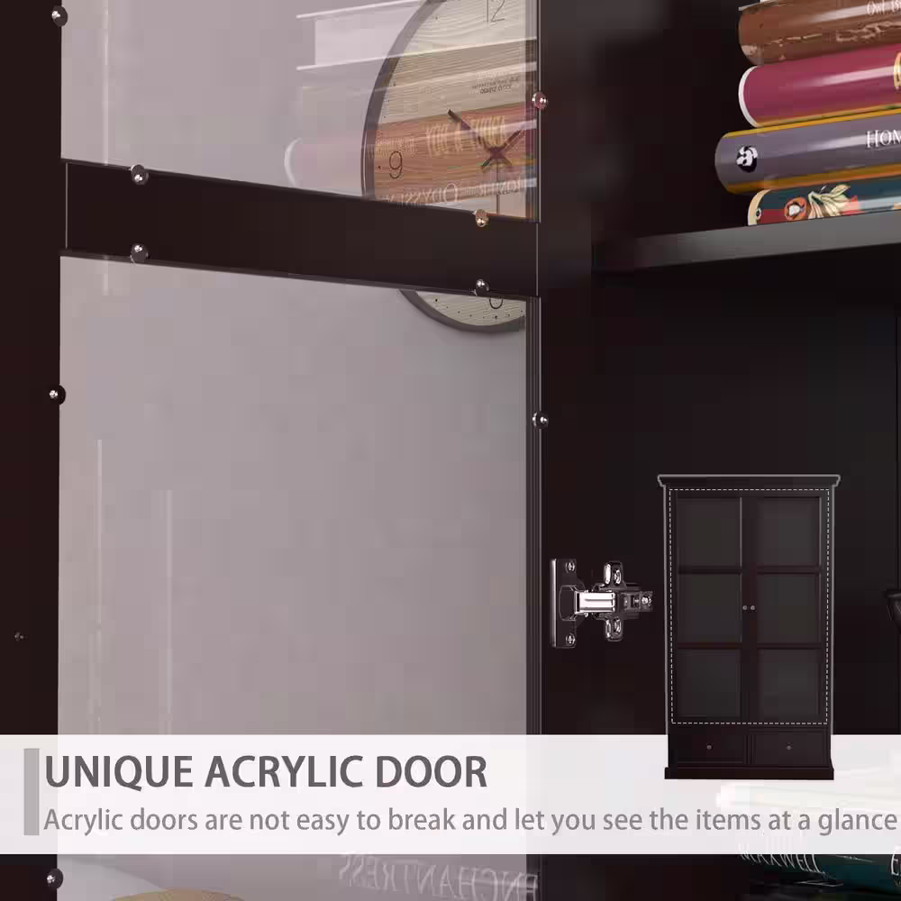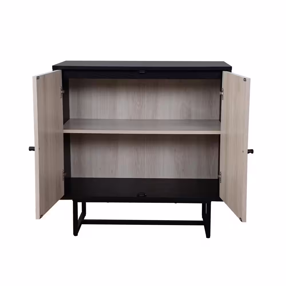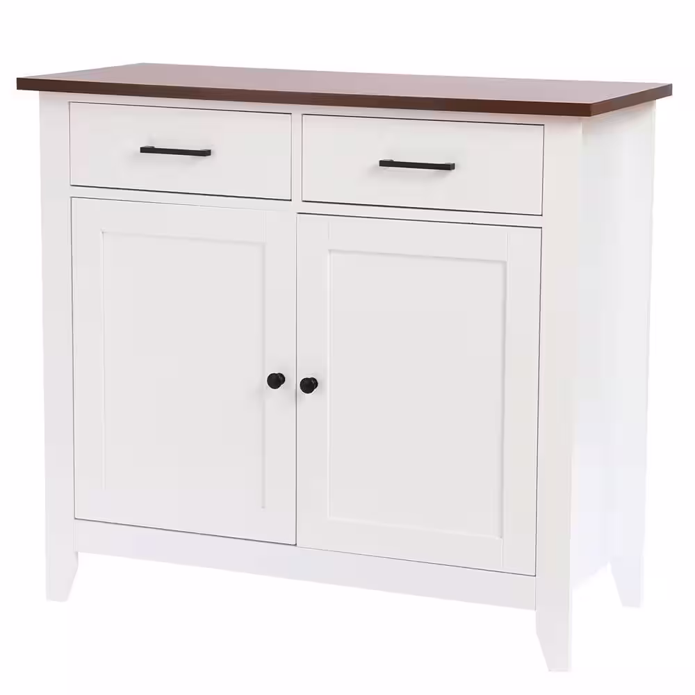 LuxenHome White and Brown Accent Storage Cabinet with Doors, Drawers and Shelf