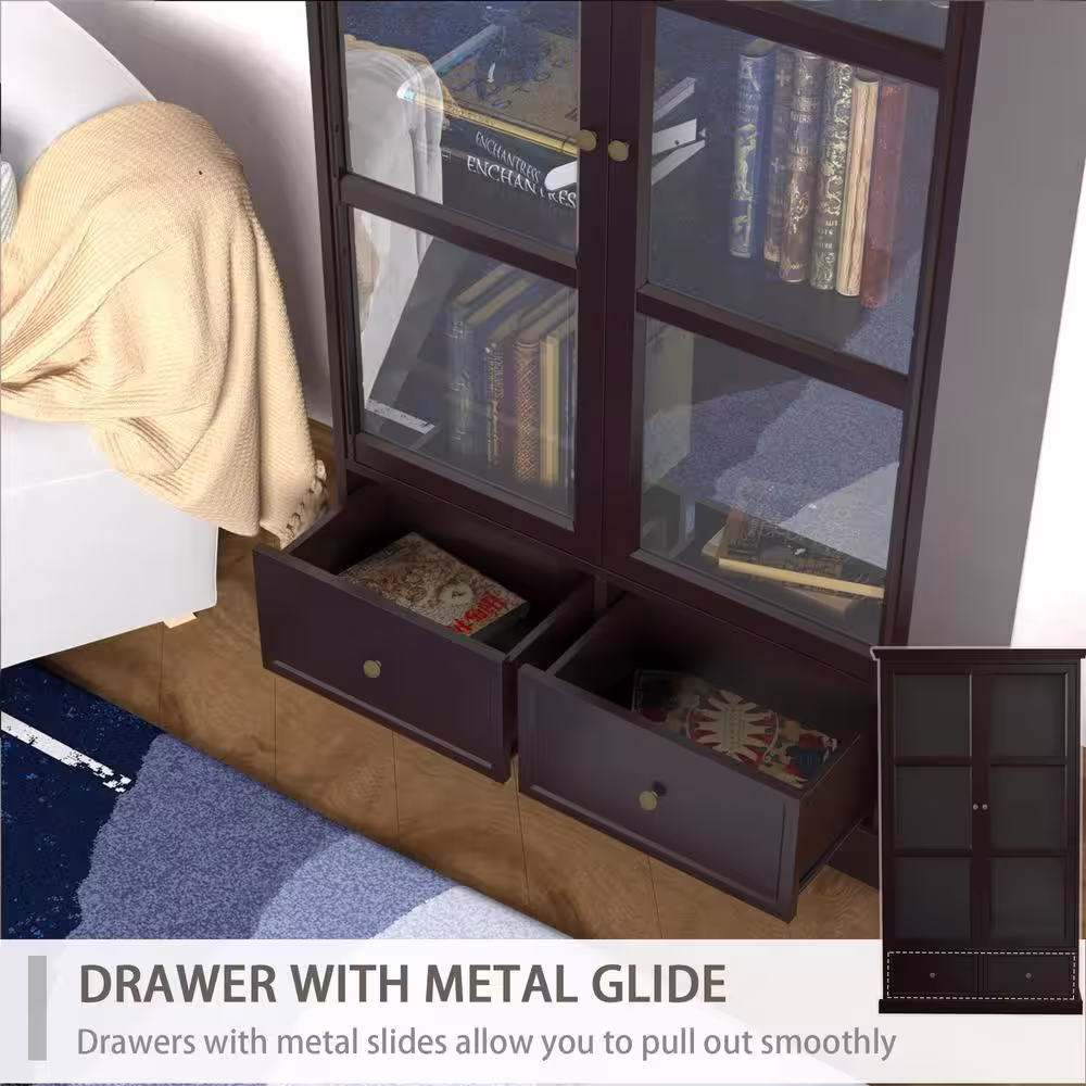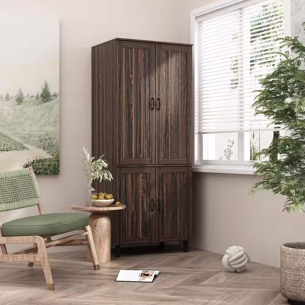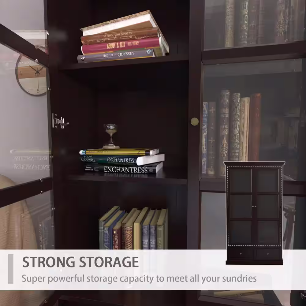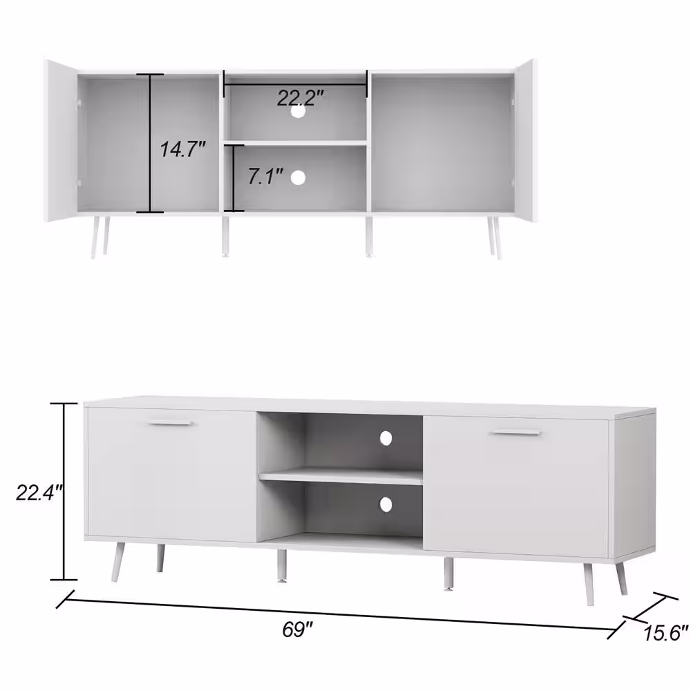 LuxenHome White and Brown Accent Storage Cabinet with Doors, Drawers and Shelf