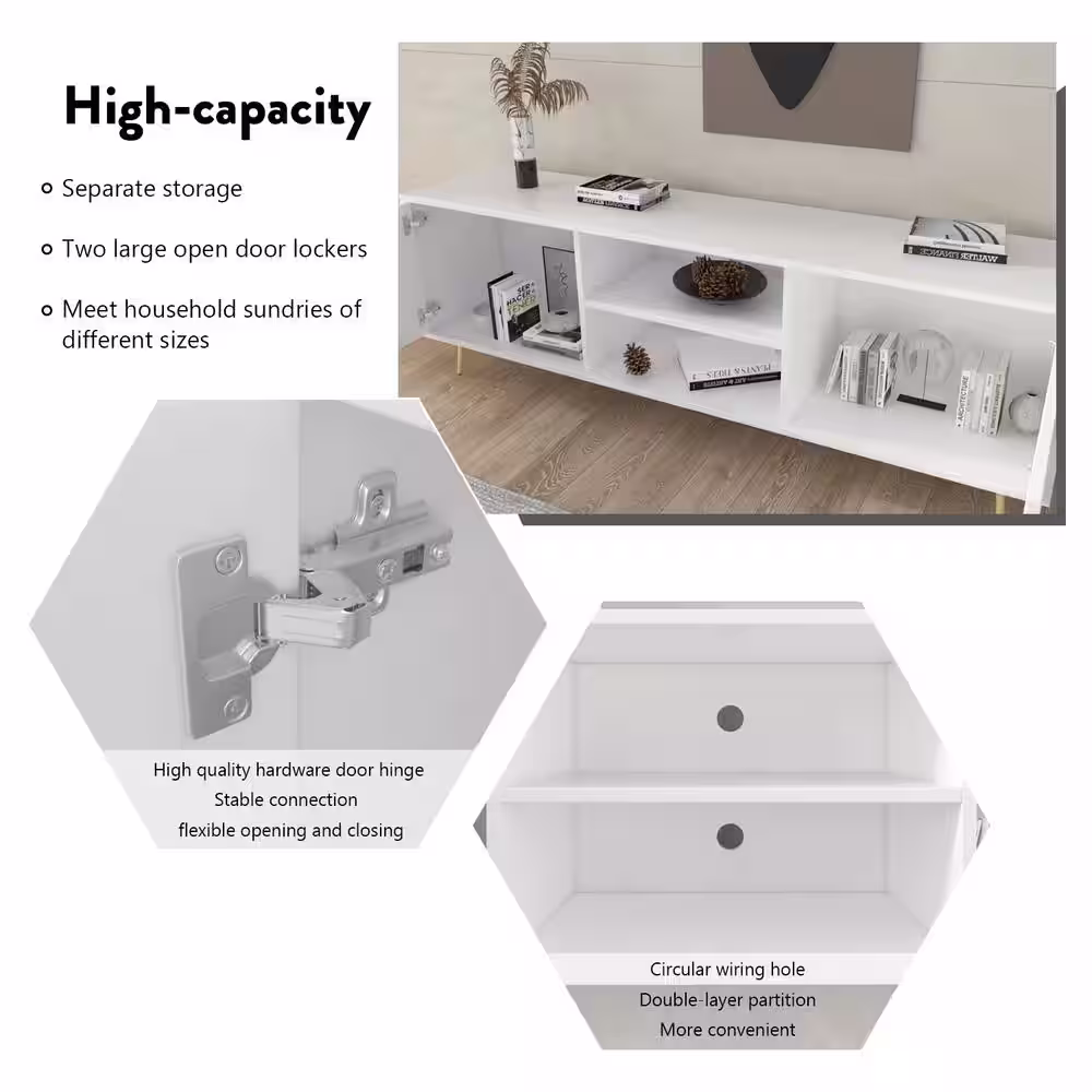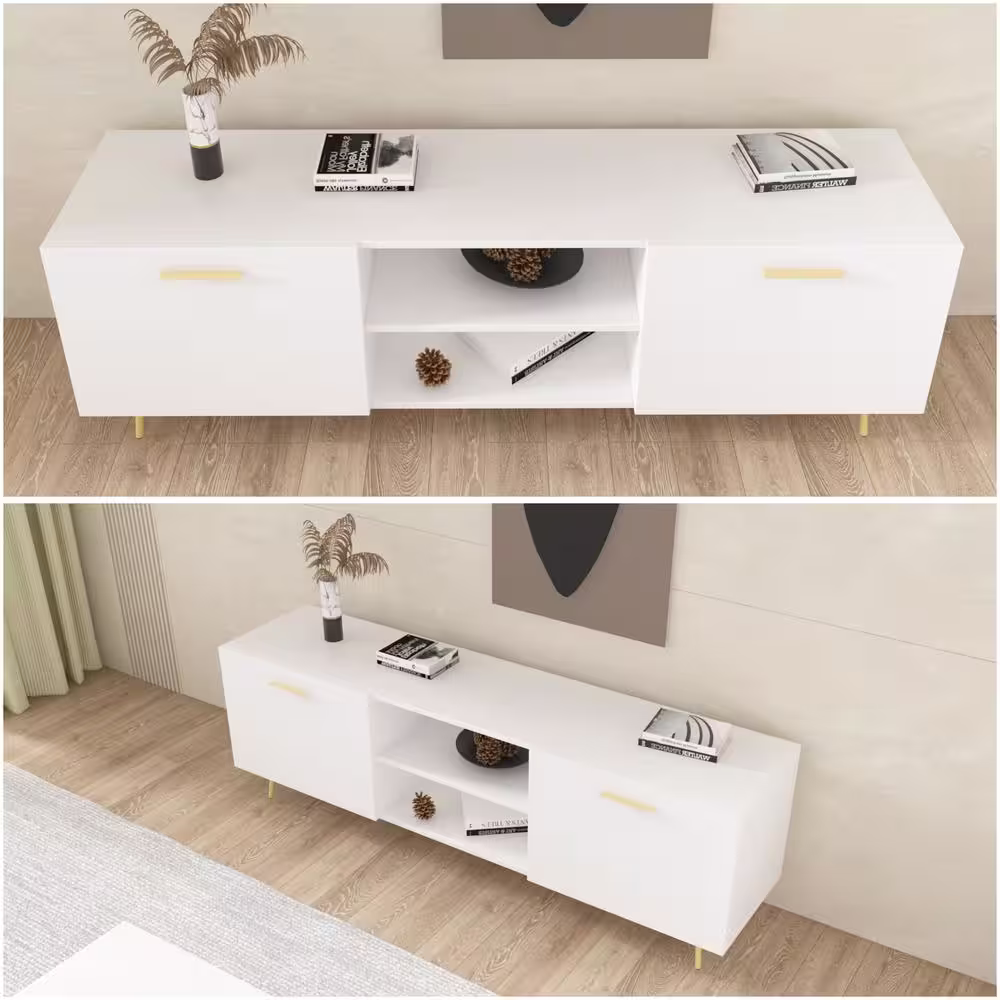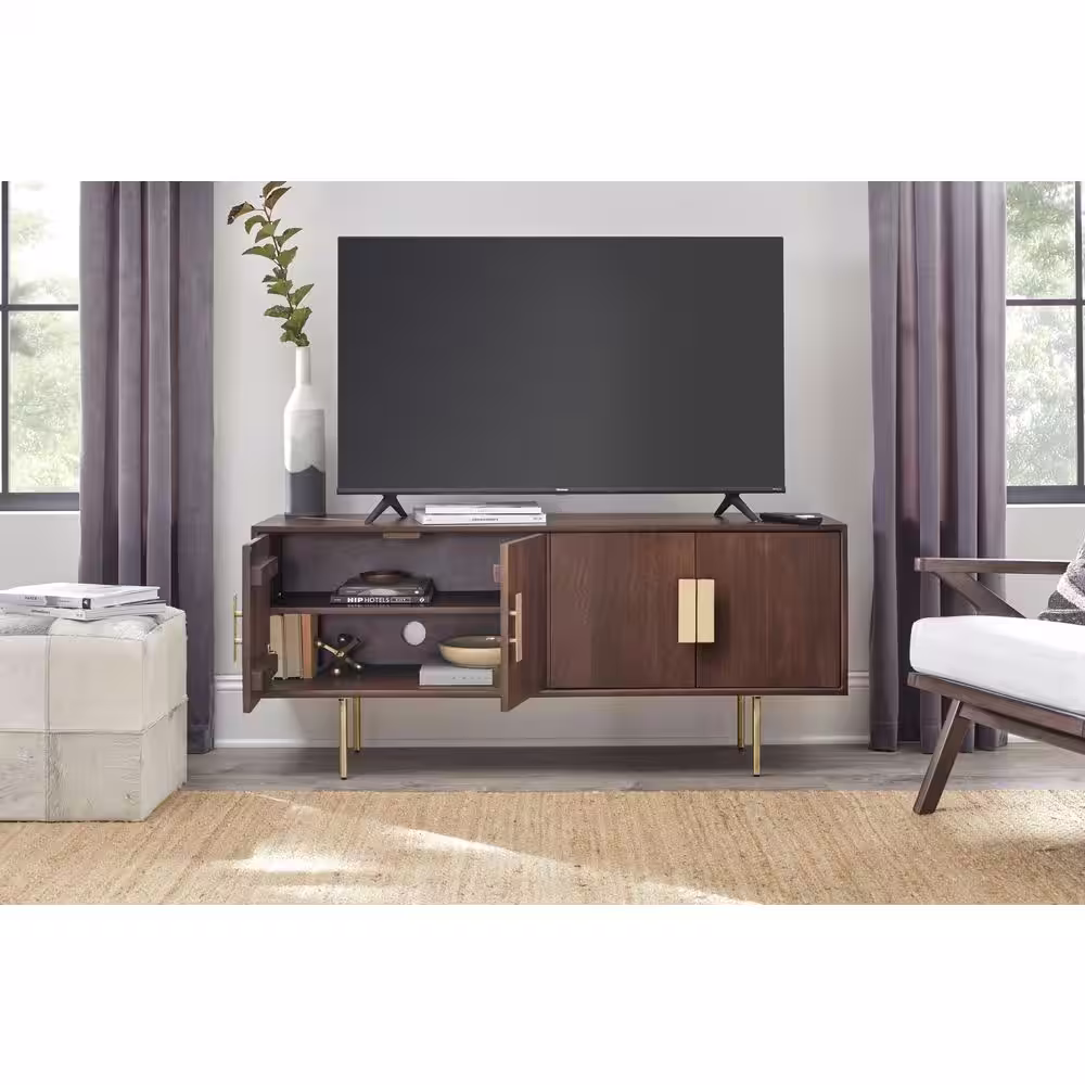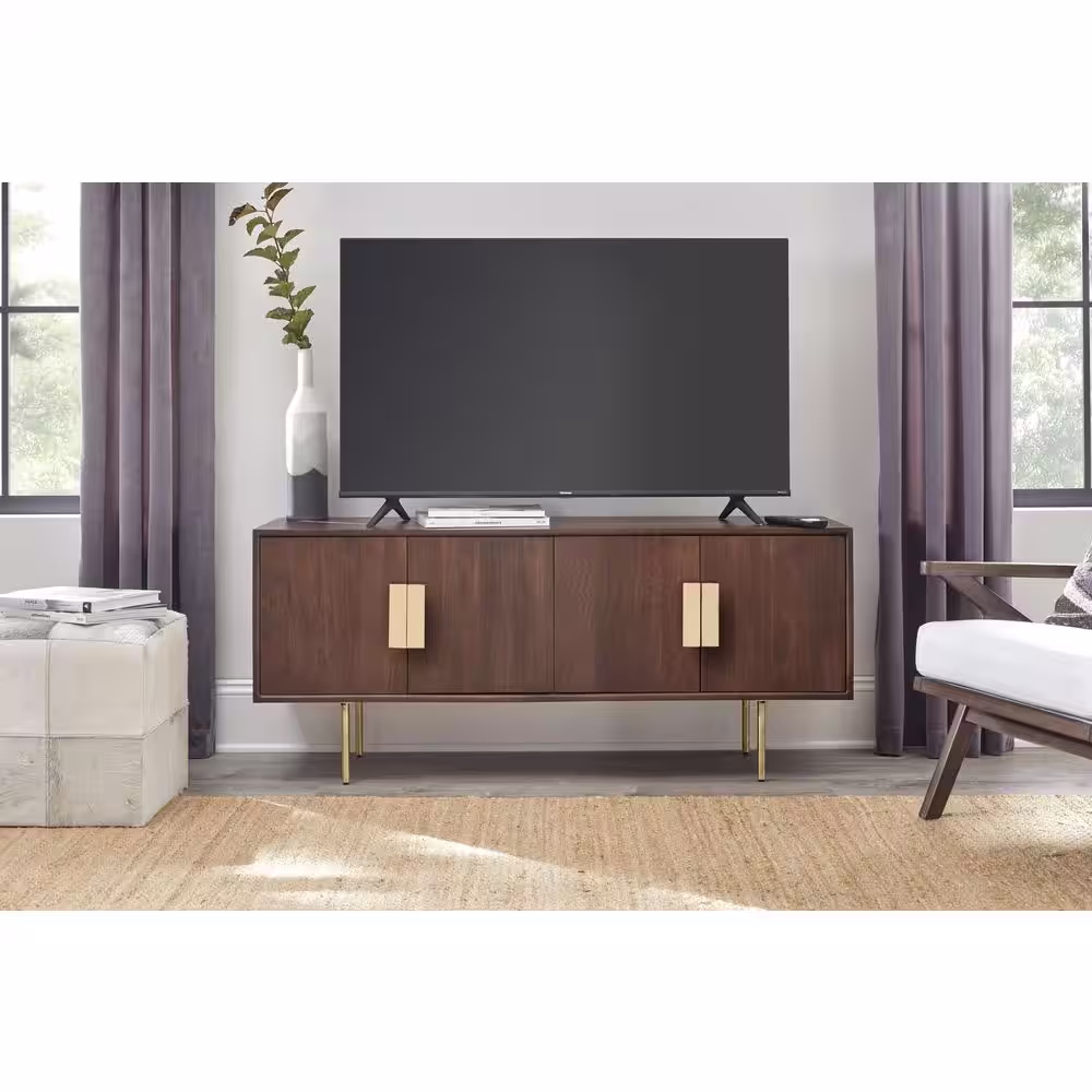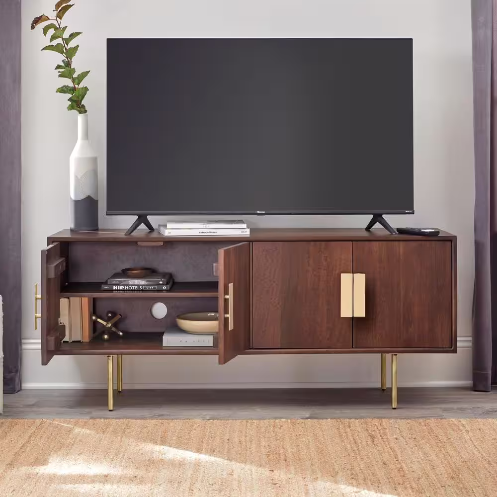 Home Decorators Collection 54 in. Mid-Century Modern Walnut Brown Media Cabinet with Gold Metal Accents