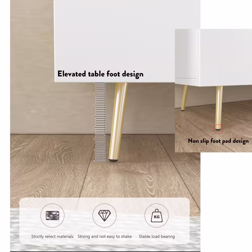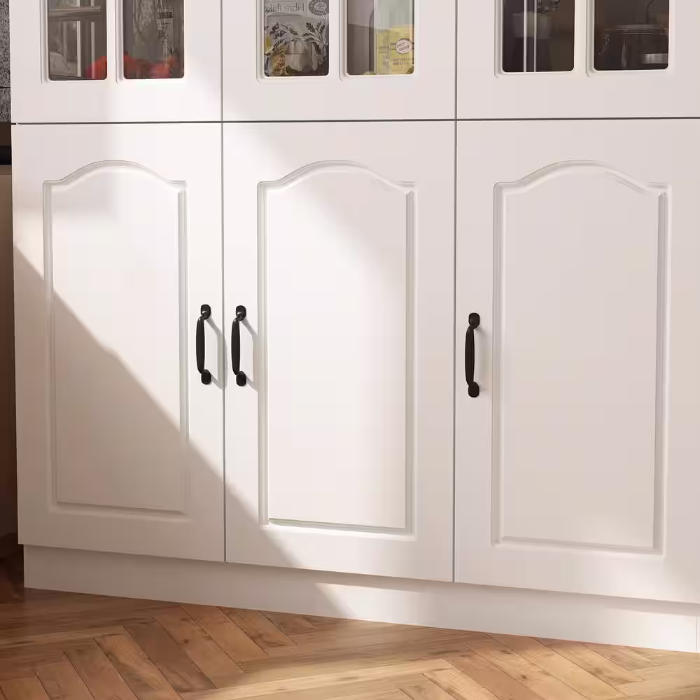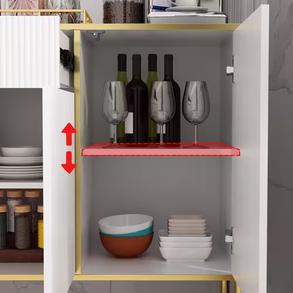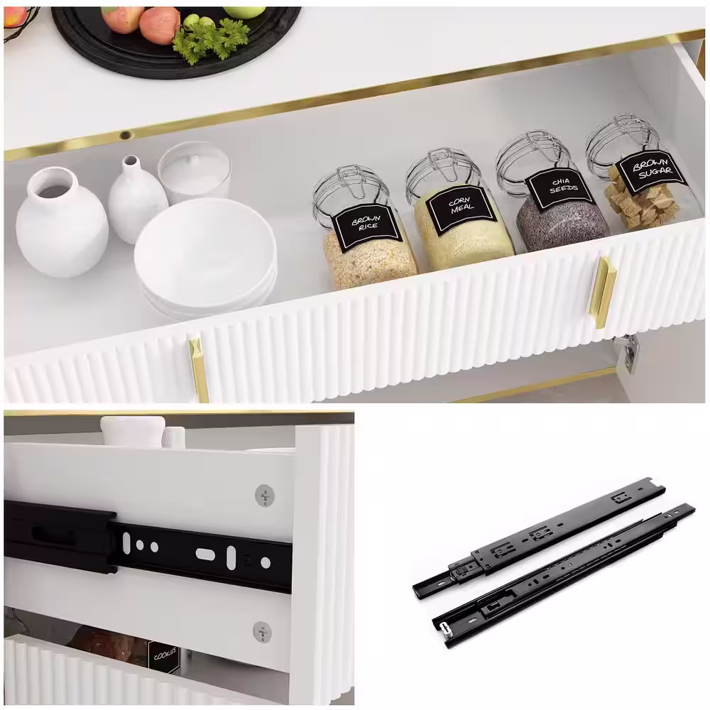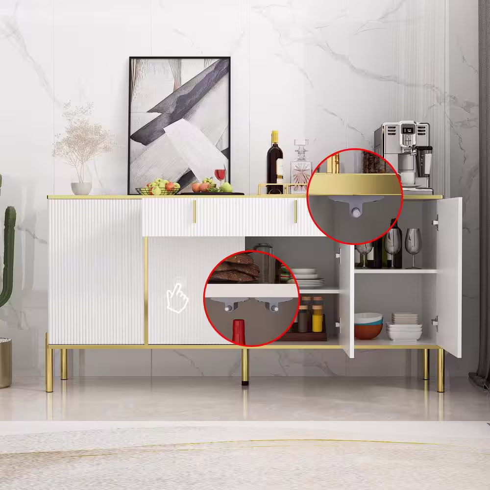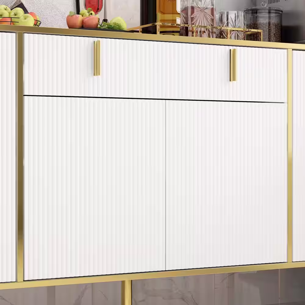 None White Wavy Paint Touch Doors Accent Storage Cabinet with Adjustable Shelves and Drawer