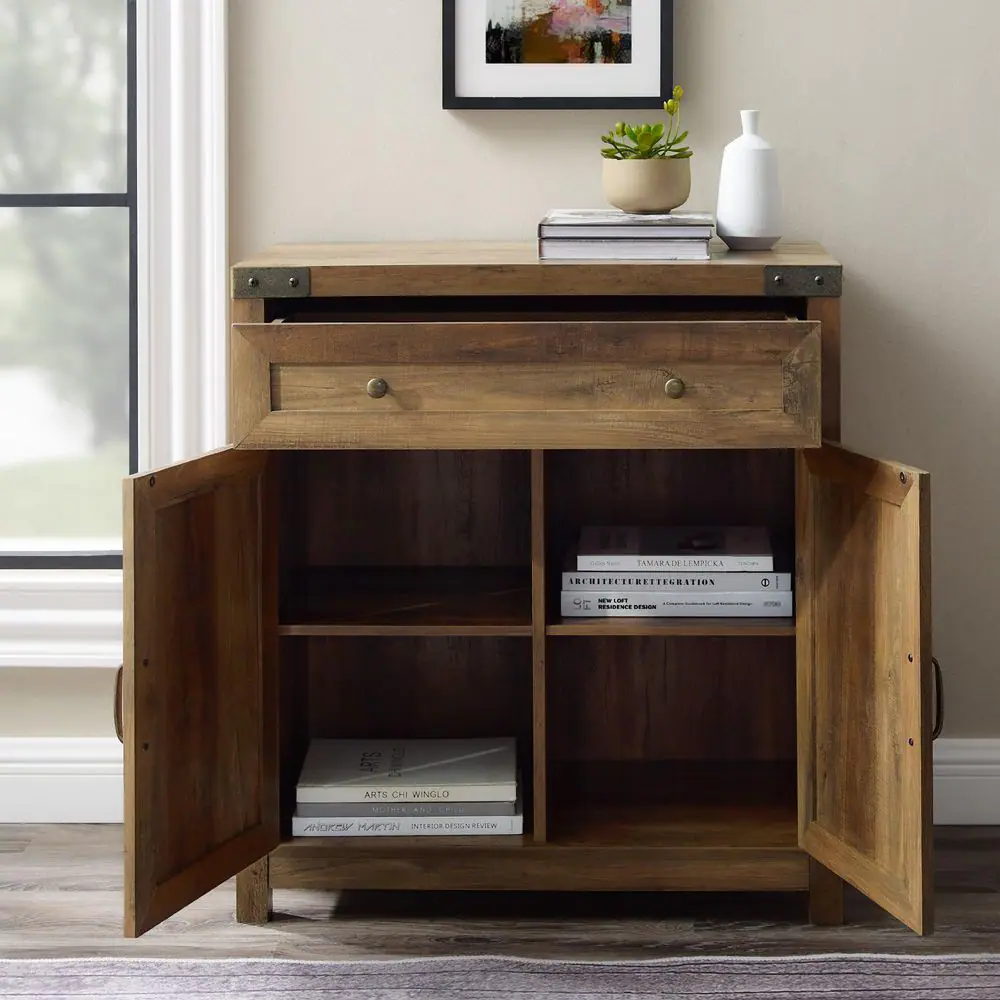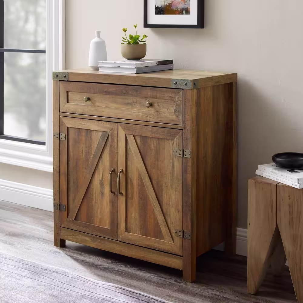 Welwick Designs Barnwood Collection 30 in. Barnwood Accent Cabinet with Barn Doors