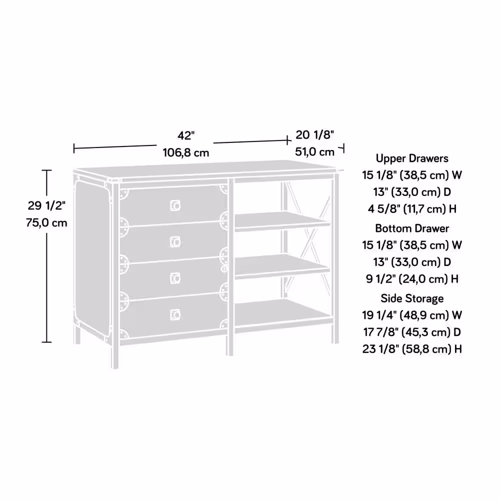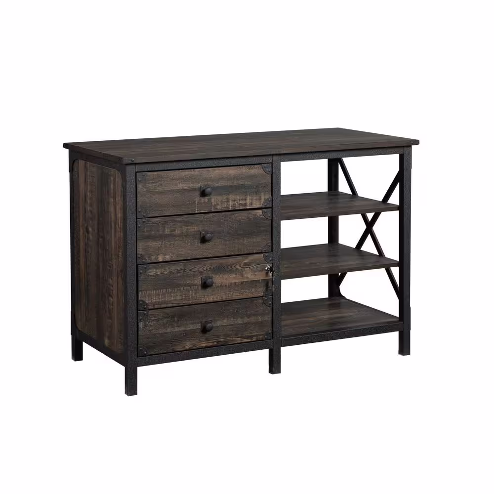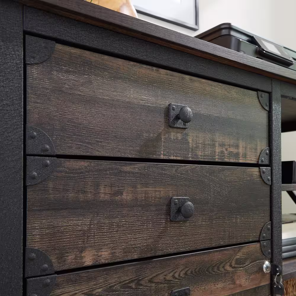 SAUDER Steel River Carbon Oak Accent Cabinet with File Storage and Metal Frame