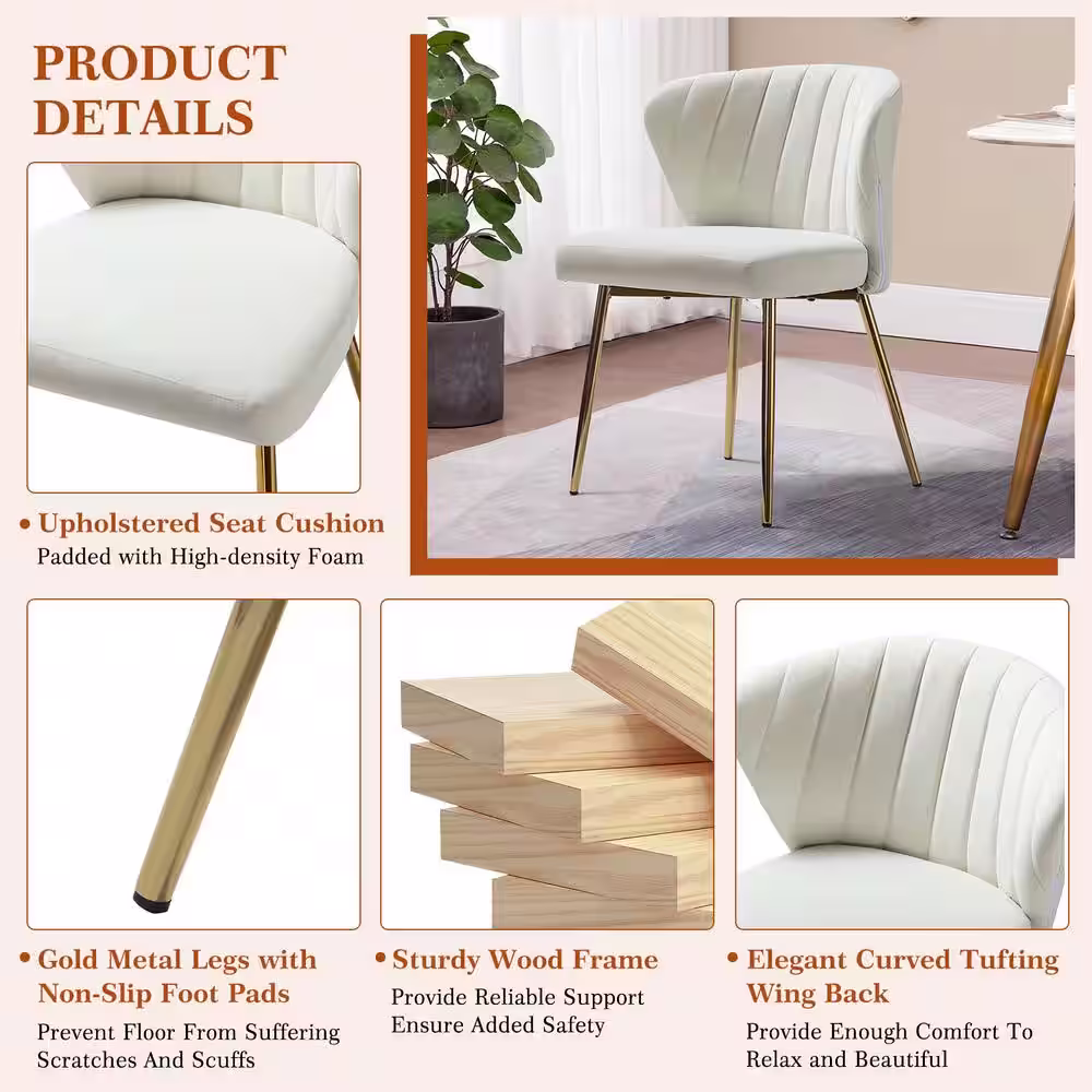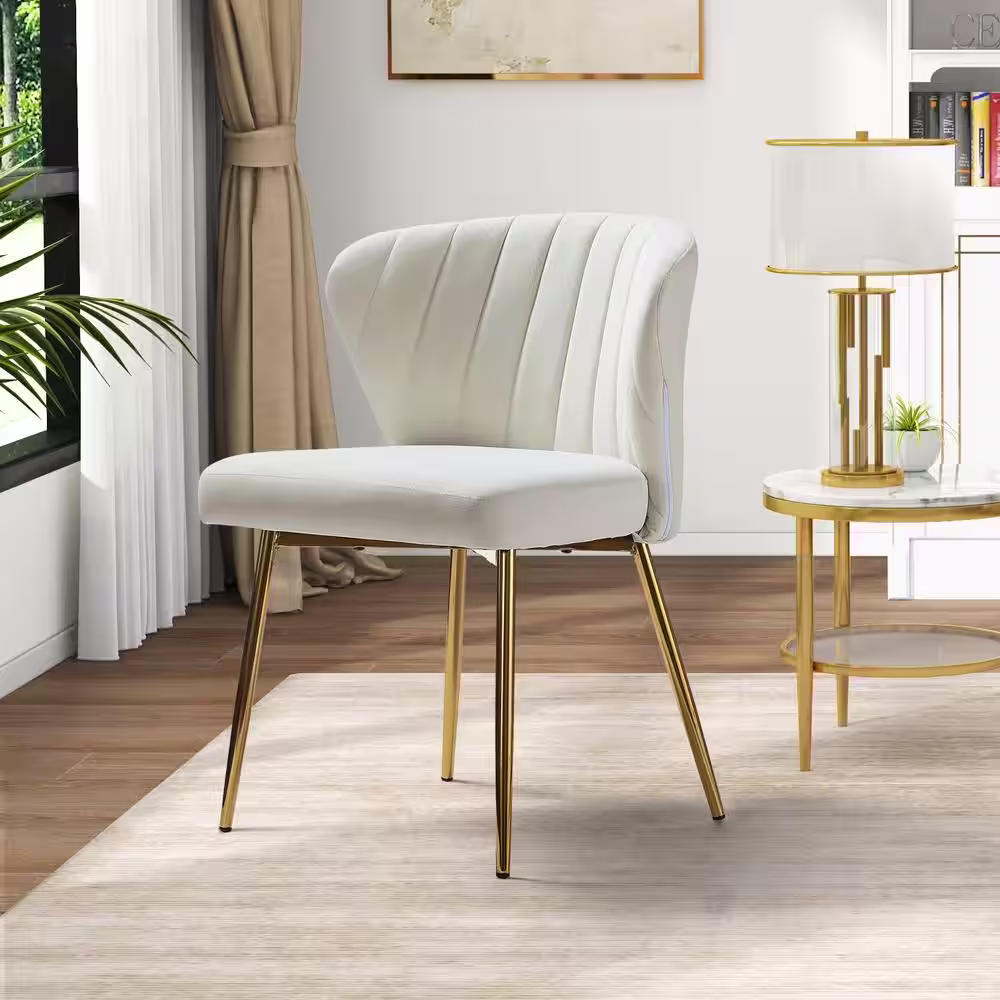 JAYDEN CREATION Luna Ivory Velvet 20 in.W x 19.5 in.D x 29 in.H Tufted Wingback Side Chair with Metal Legs