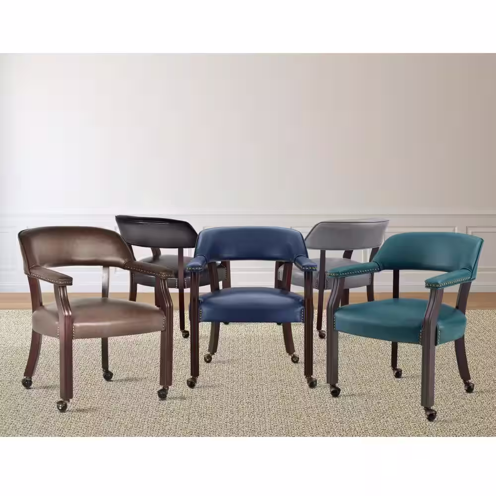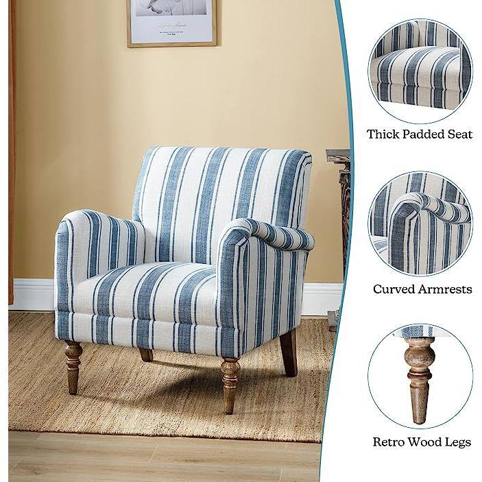 JAYDEN CREATION Hallstatt Navy Classic Wooden Upholstery Accent Arm Chair with Wood Base