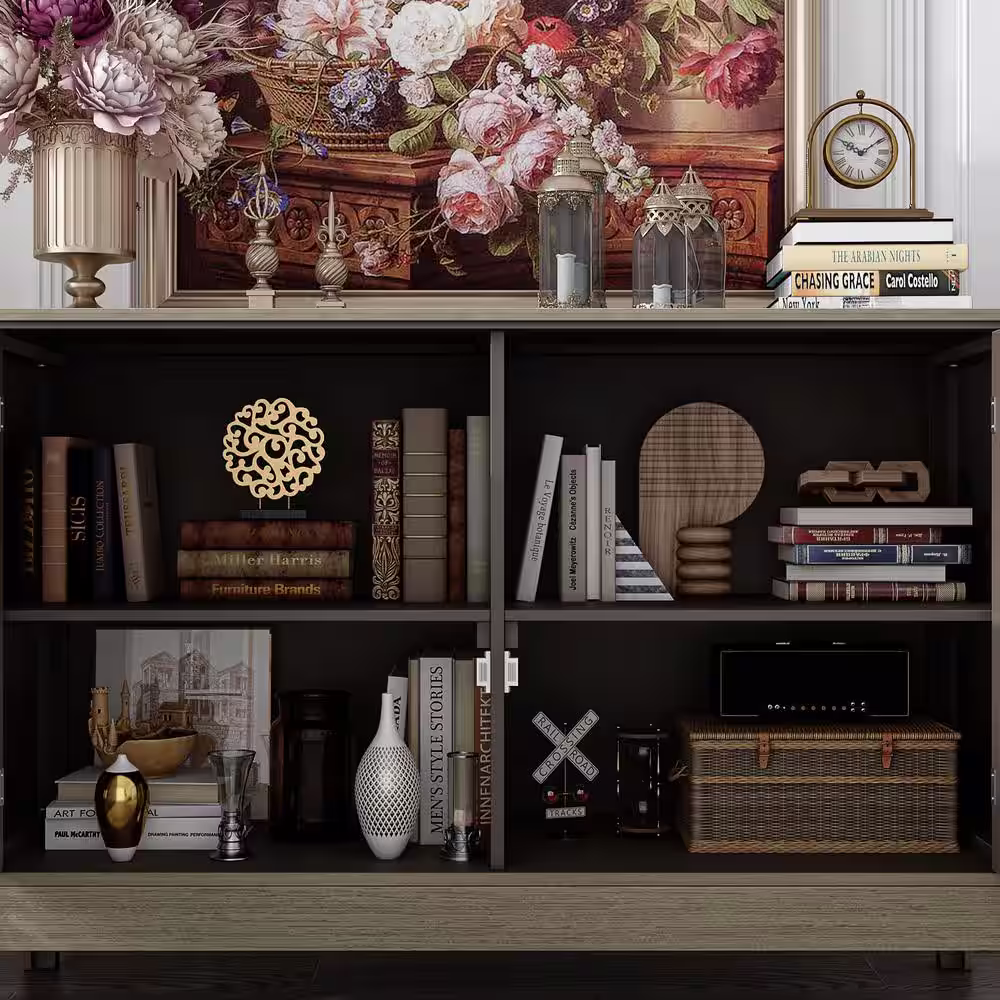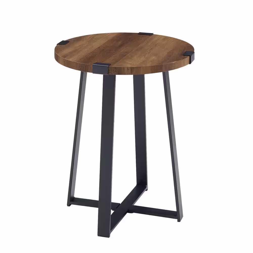 StyleWell Ramsey Round Sable Brown Wood End Table with Brass Caps (22 in. W x 24 in. H)
