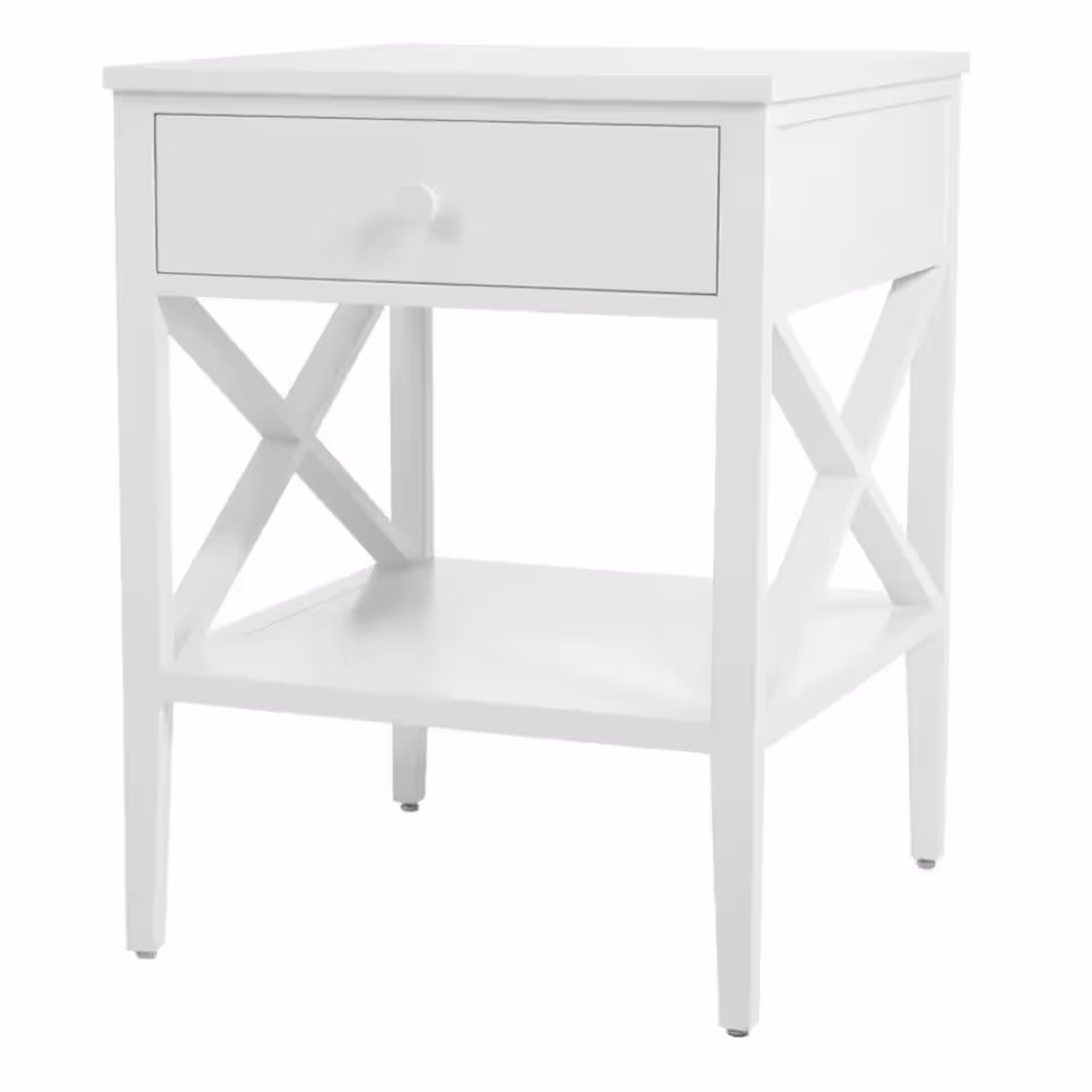 StyleWell Oakley Rectangular White Wood 1 Drawer End Table with X Side Detail (18 in. W x 24 in. H)