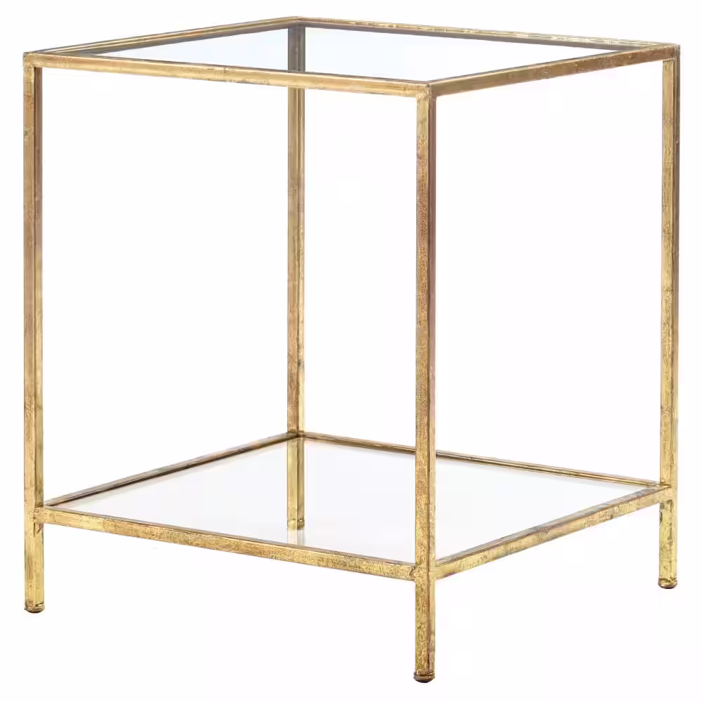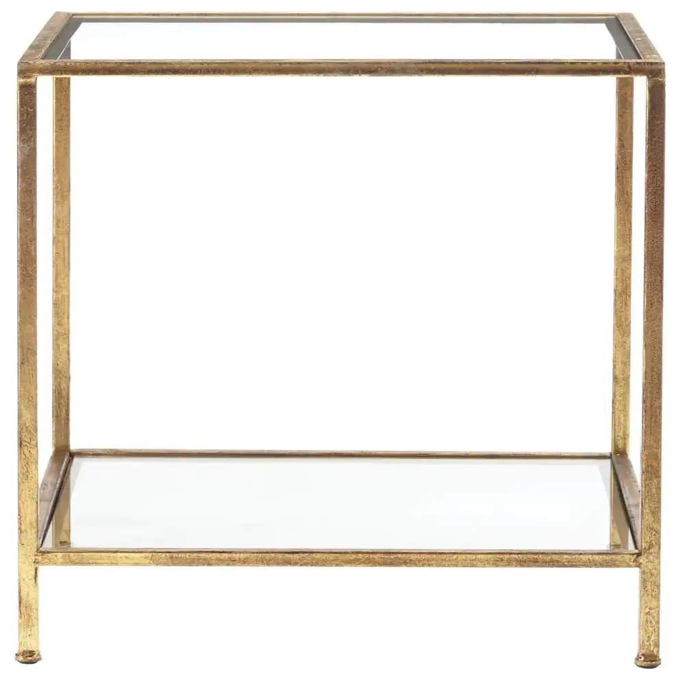 Home Decorators Collection Bella Square Gold Leaf Metal and Glass Accent Table (20 in. W x 24 in. H)