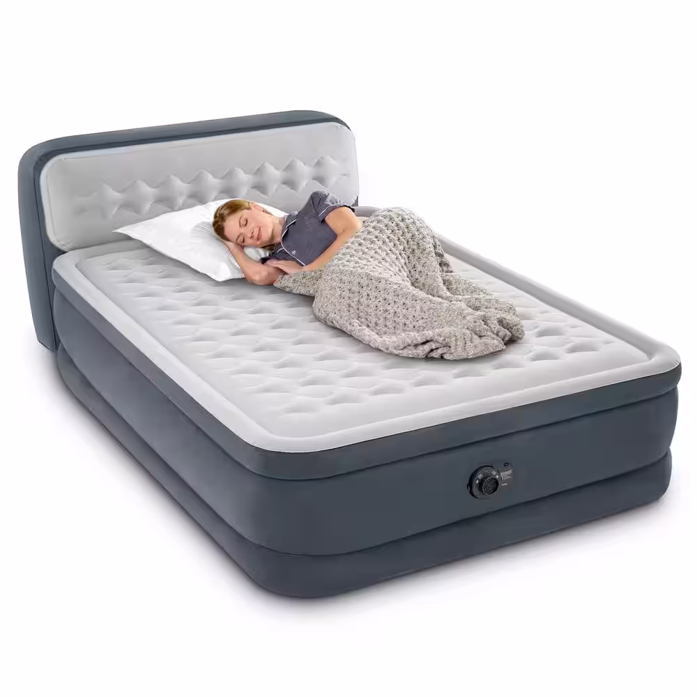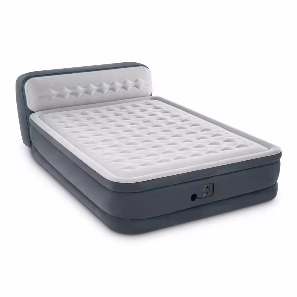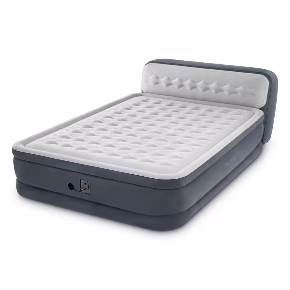 INTEX Queen Dura Beam Deluxe Airbed with Built in Pump & Ultra Plush Headboard