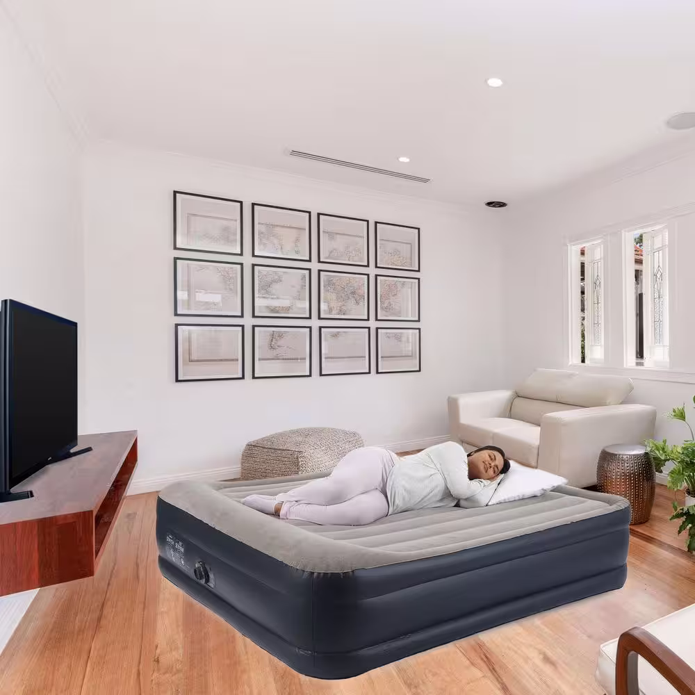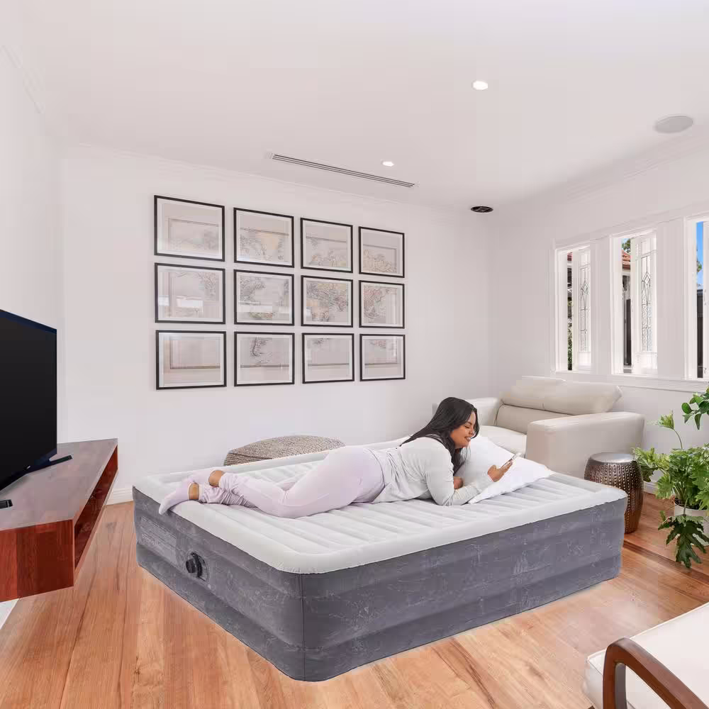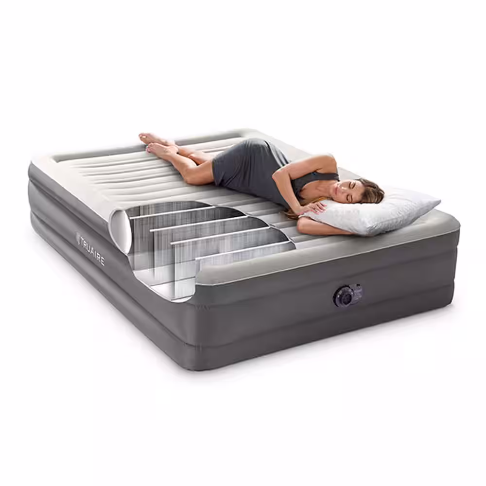 Intex TruAire Luxury Queen Air Mattress Airbed with Lumbar Support and Built in Pump