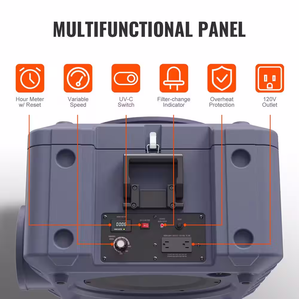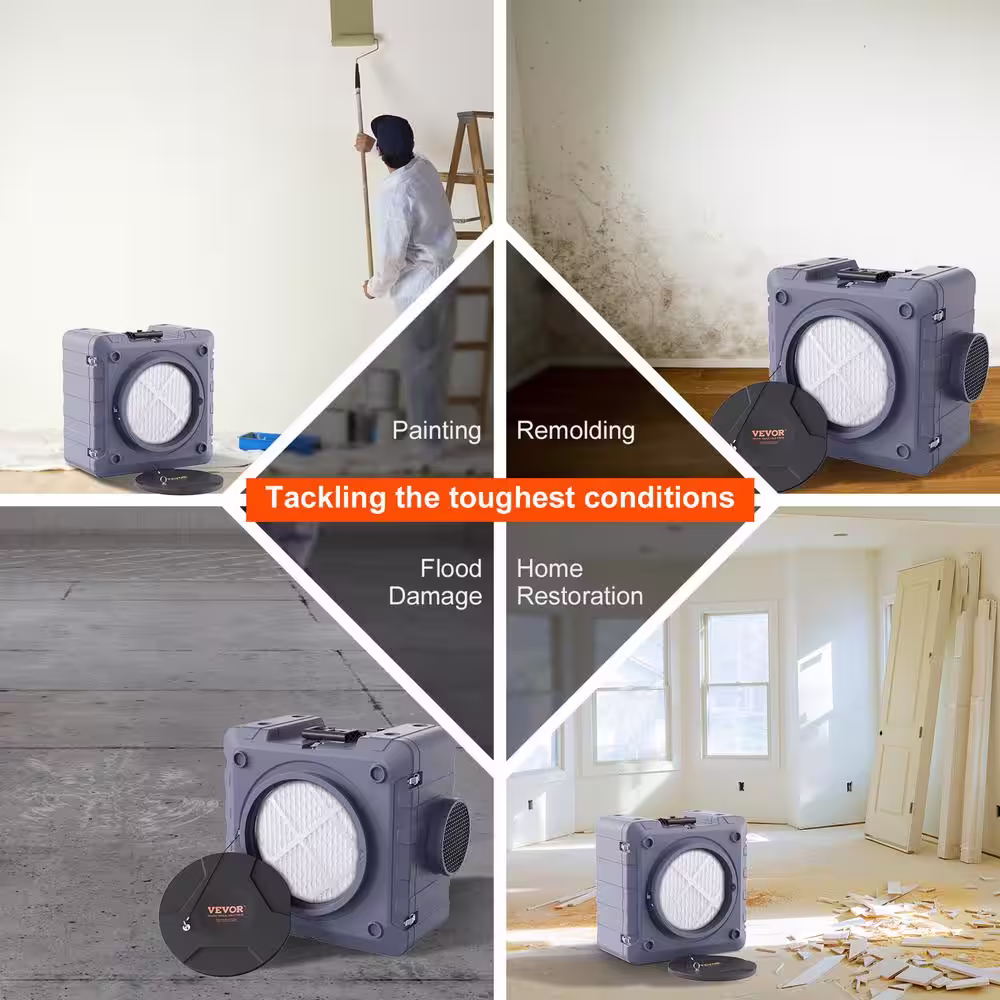 VEVOR Air Scrubber with 3-Stage Filtration 60 sq. ft. HEPA - Type Air Scrubber in Gray with Portable