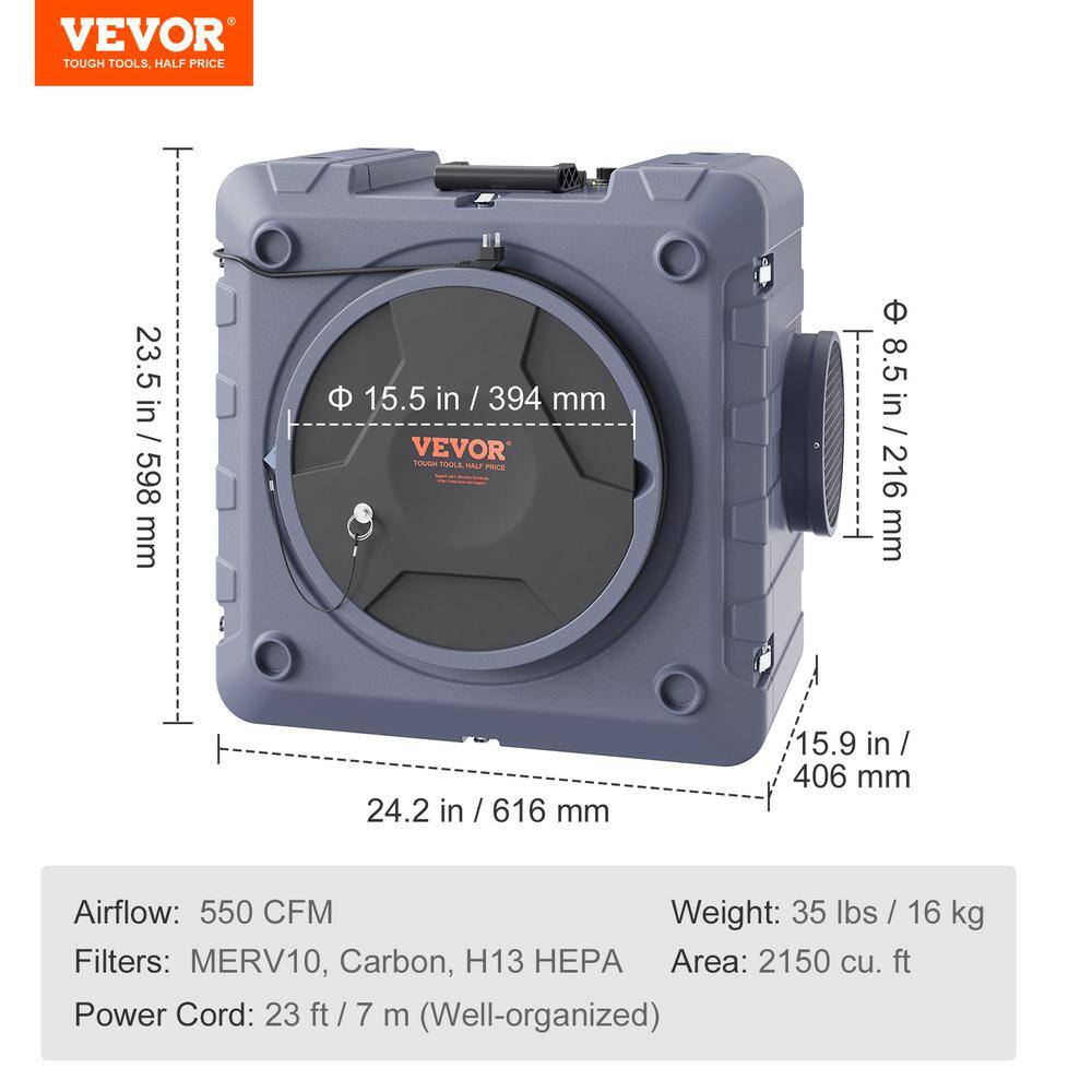 VEVOR Air Scrubber with 3-Stage Filtration 96 sq. ft. HEPA - Type Air Scrubber in Gray with Portable
