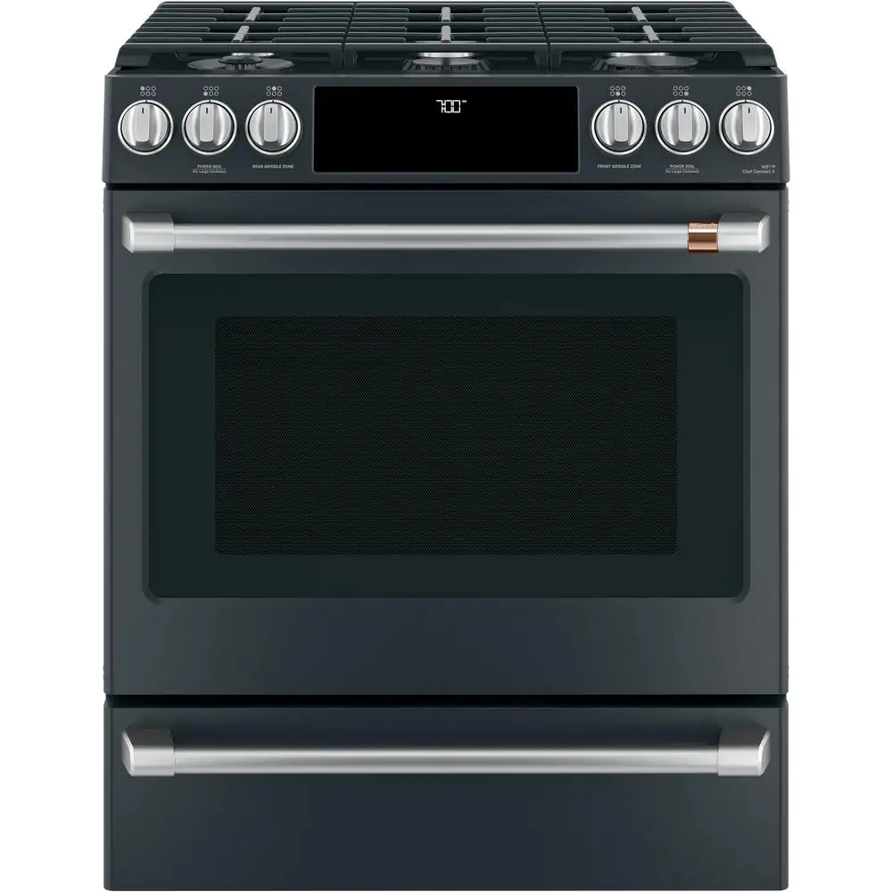Cafe 30 in. 5.6 cu. ft. Smart Slide-In Gas Range in Matte Black with True Convection, Air Fry