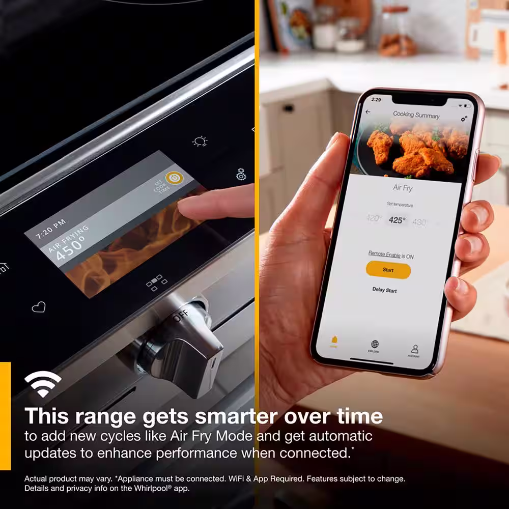 Whirlpool 6.4 cu. ft. Smart Electric Range with Air Fry With Connection in Fingerprint Resistant Black Stainless