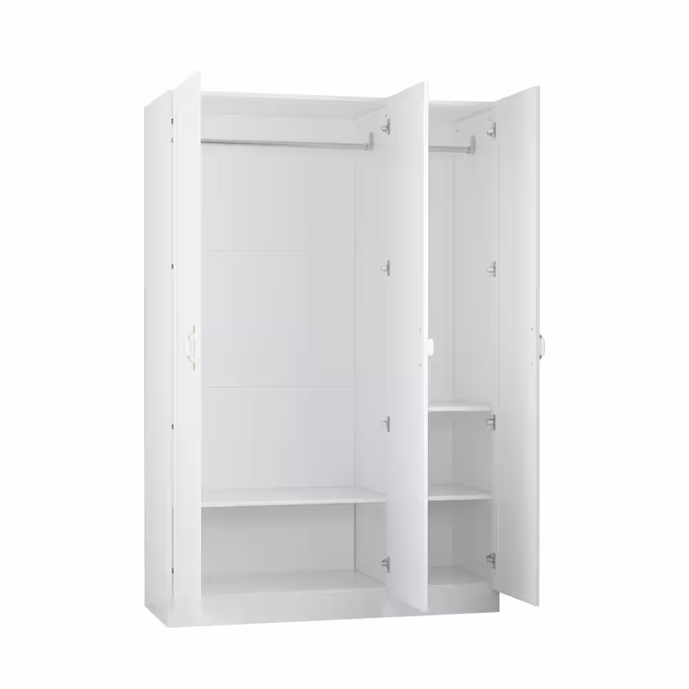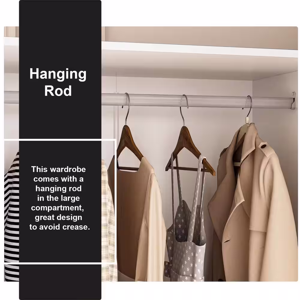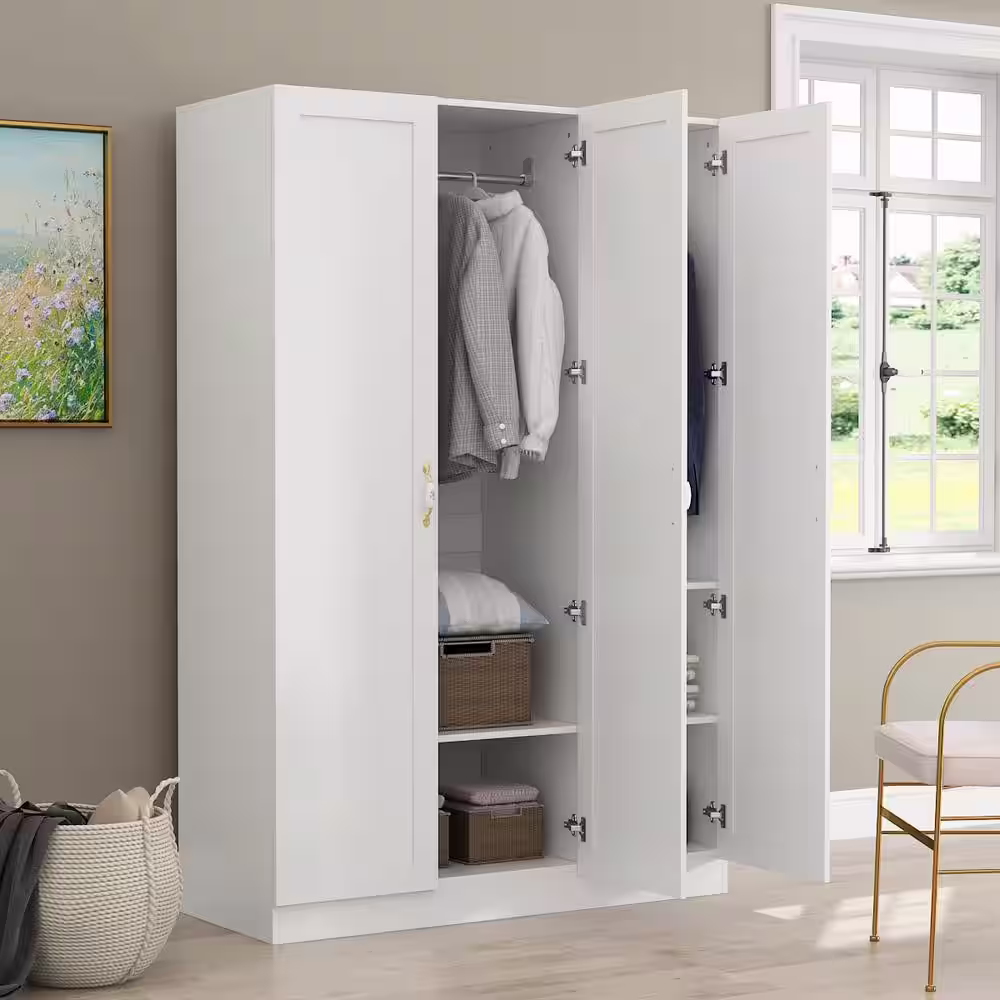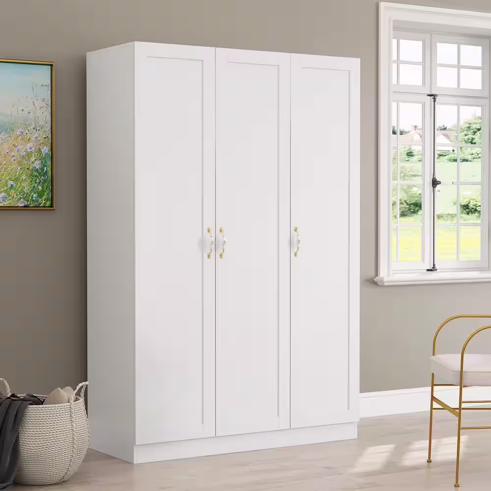 FUFU&GAGA White 3-Doors Armoires Wardrobe with Hanging Rod and Storage Cubes 69.6 in. H x 47.2 in. W x 19.6 in. D