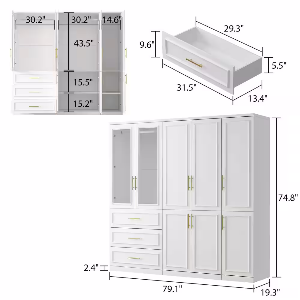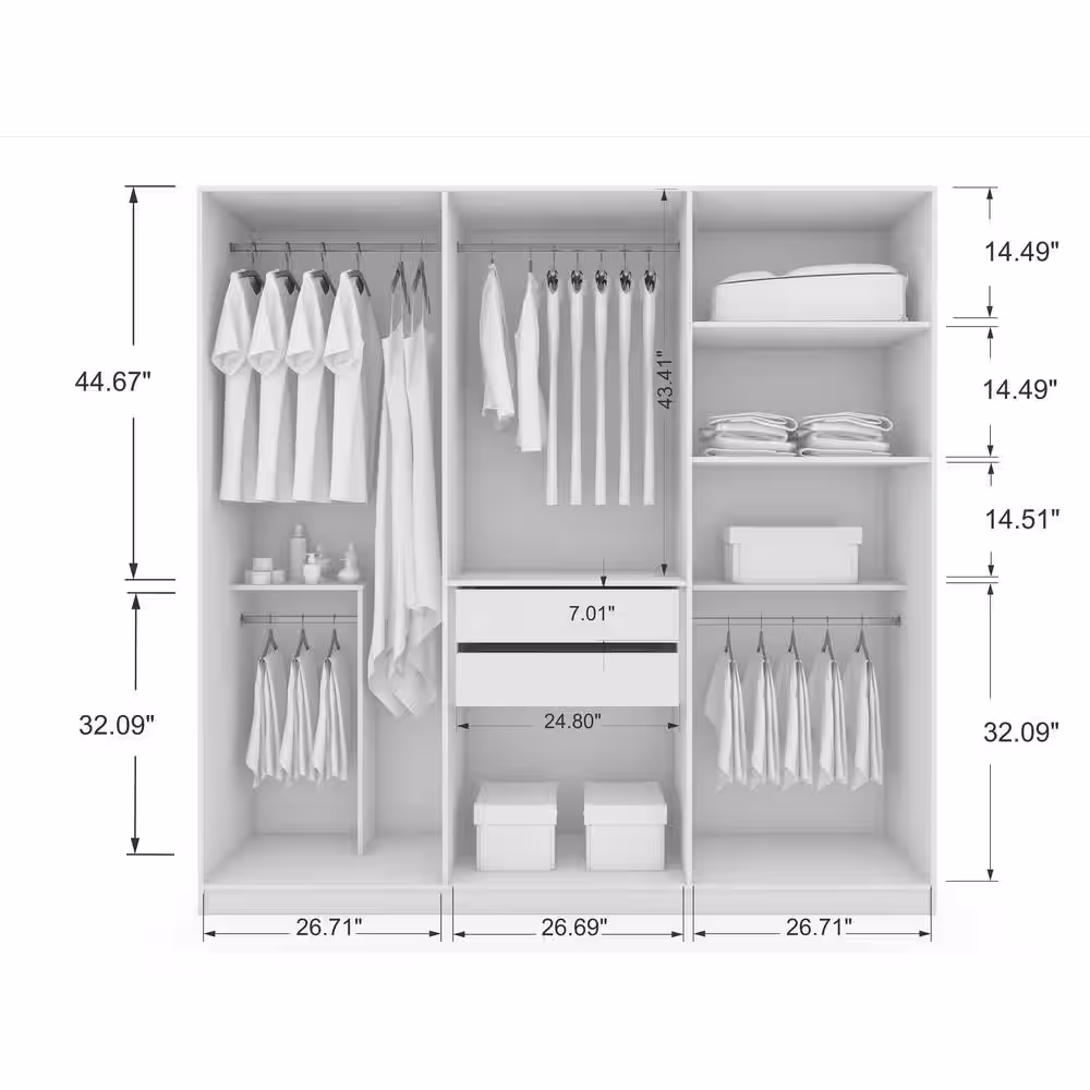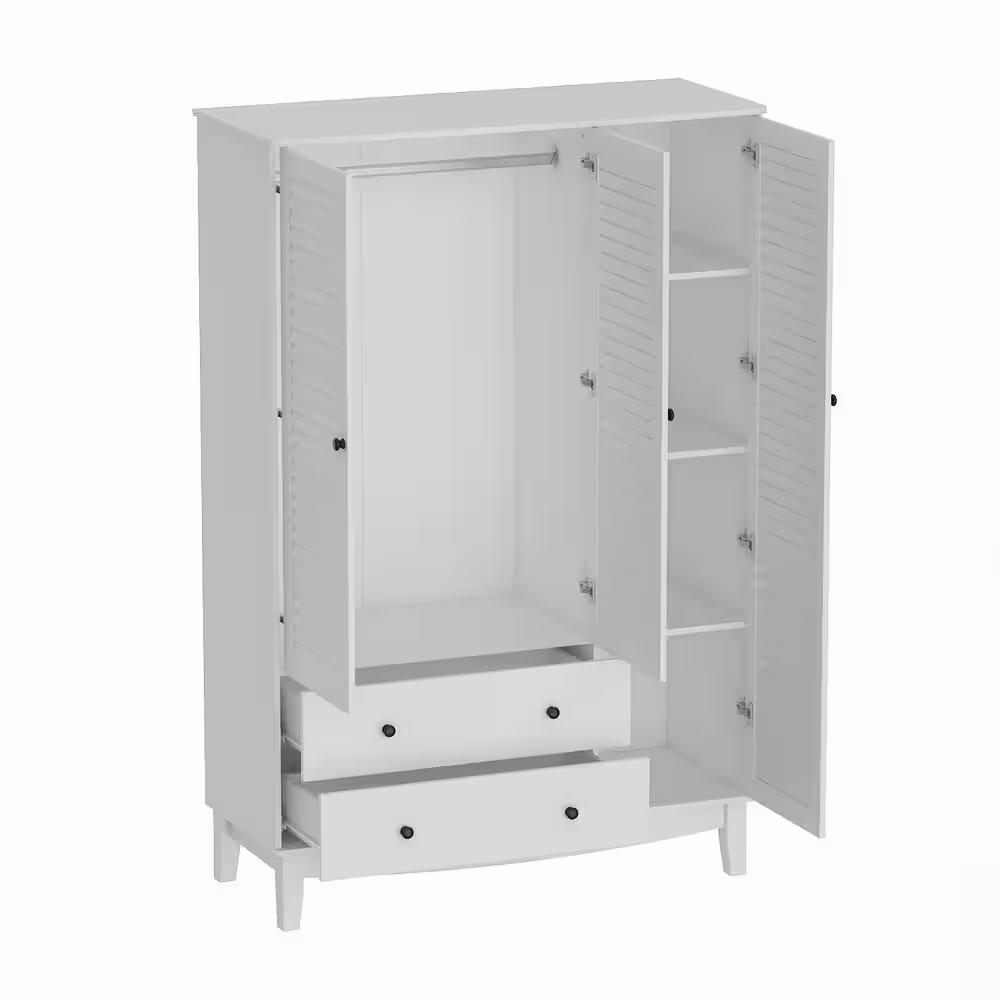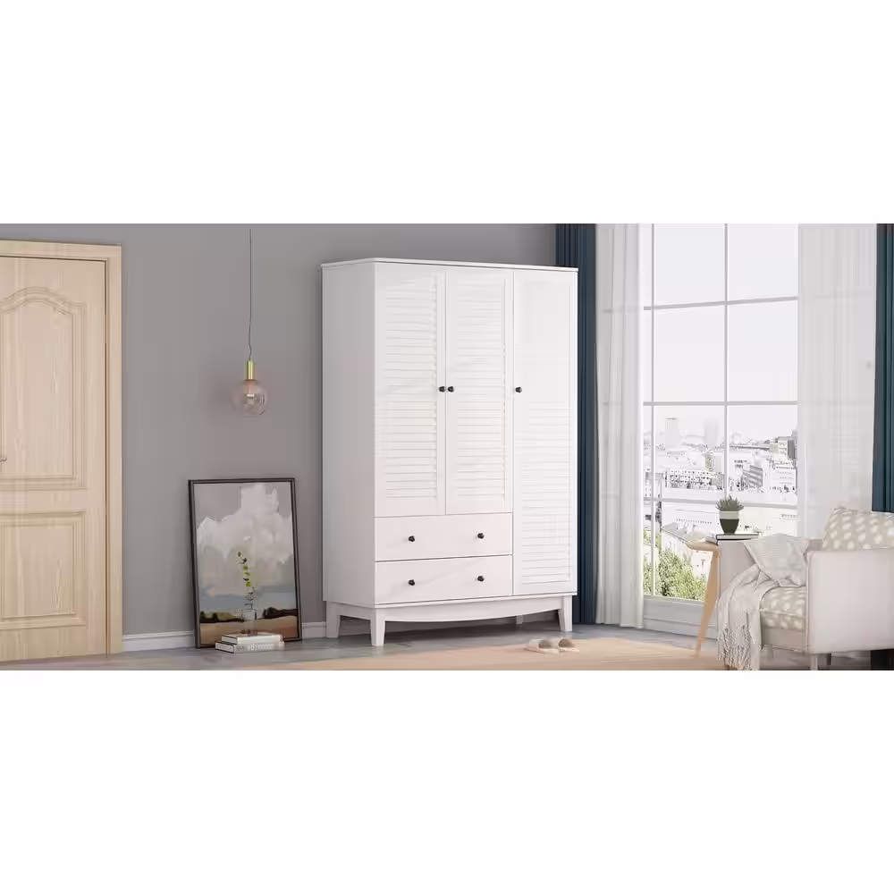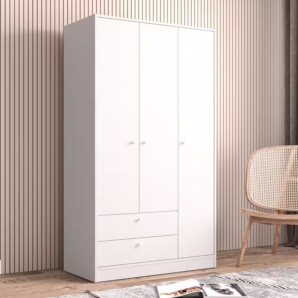 FUFU&GAGA White 3-Doors Armoires Wardrobe with Hanging Rod and Storage Cubes 69.6 in. H x 47.2 in. W x 19.6 in. D