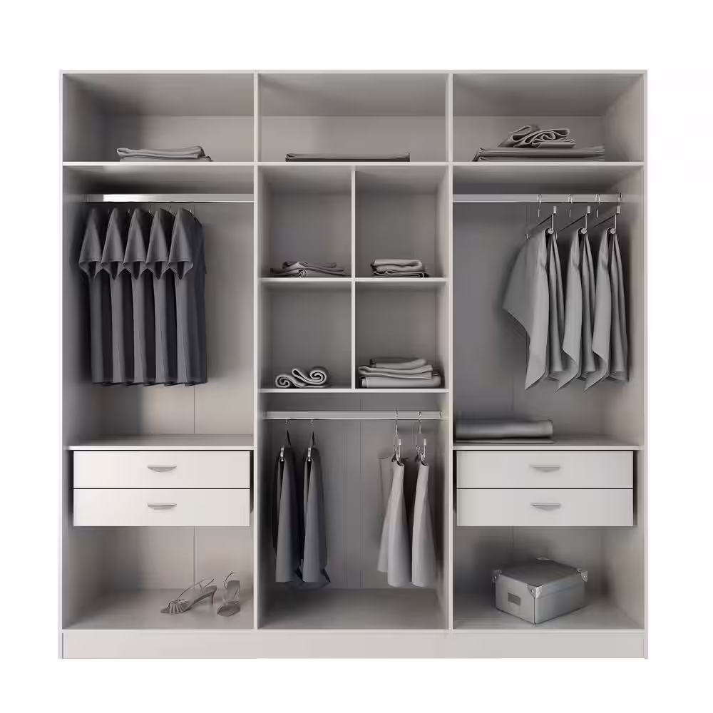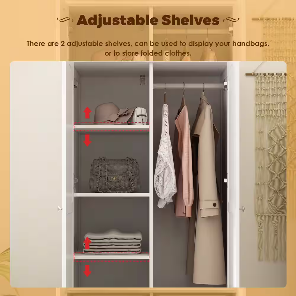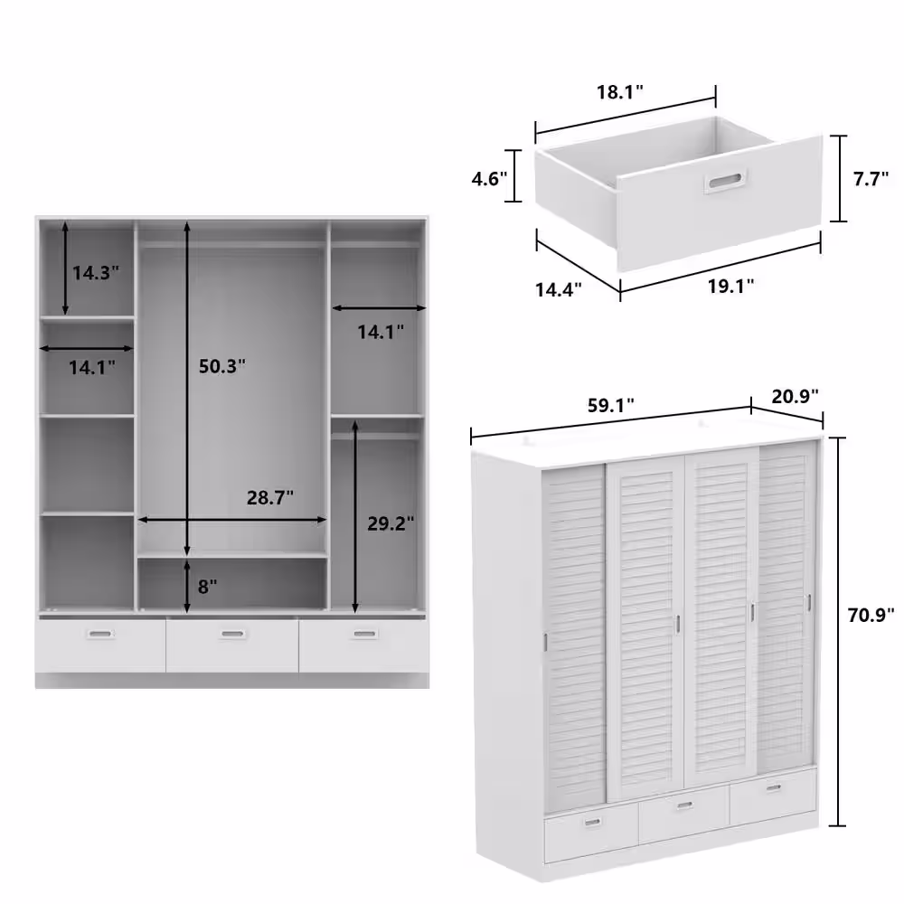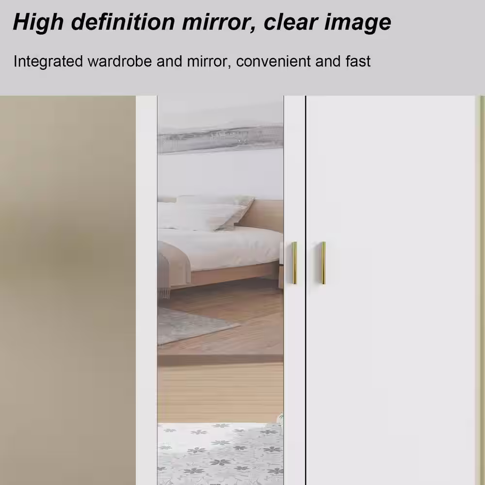 FUFU&GAGA White 3-Doors Armoires Wardrobe with Hanging Rod and Storage Cubes 69.6 in. H x 47.2 in. W x 19.6 in. D