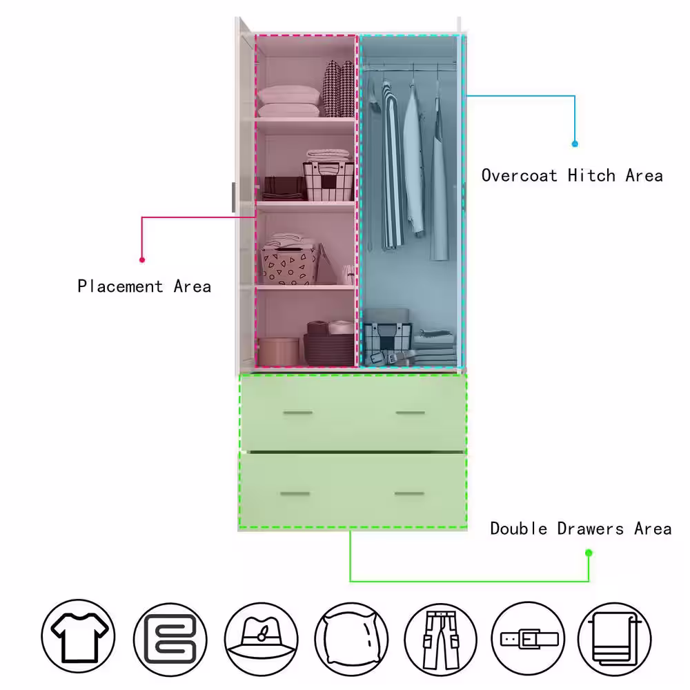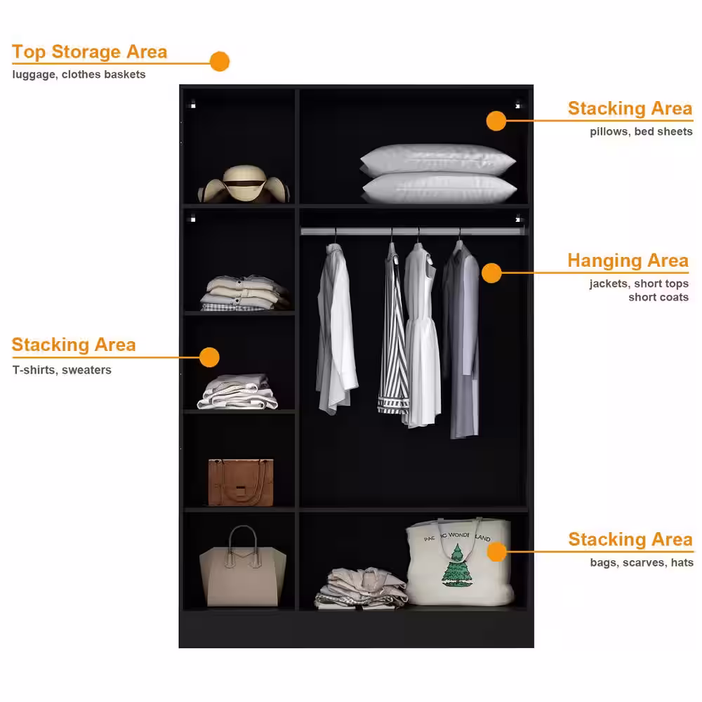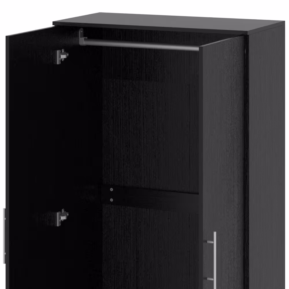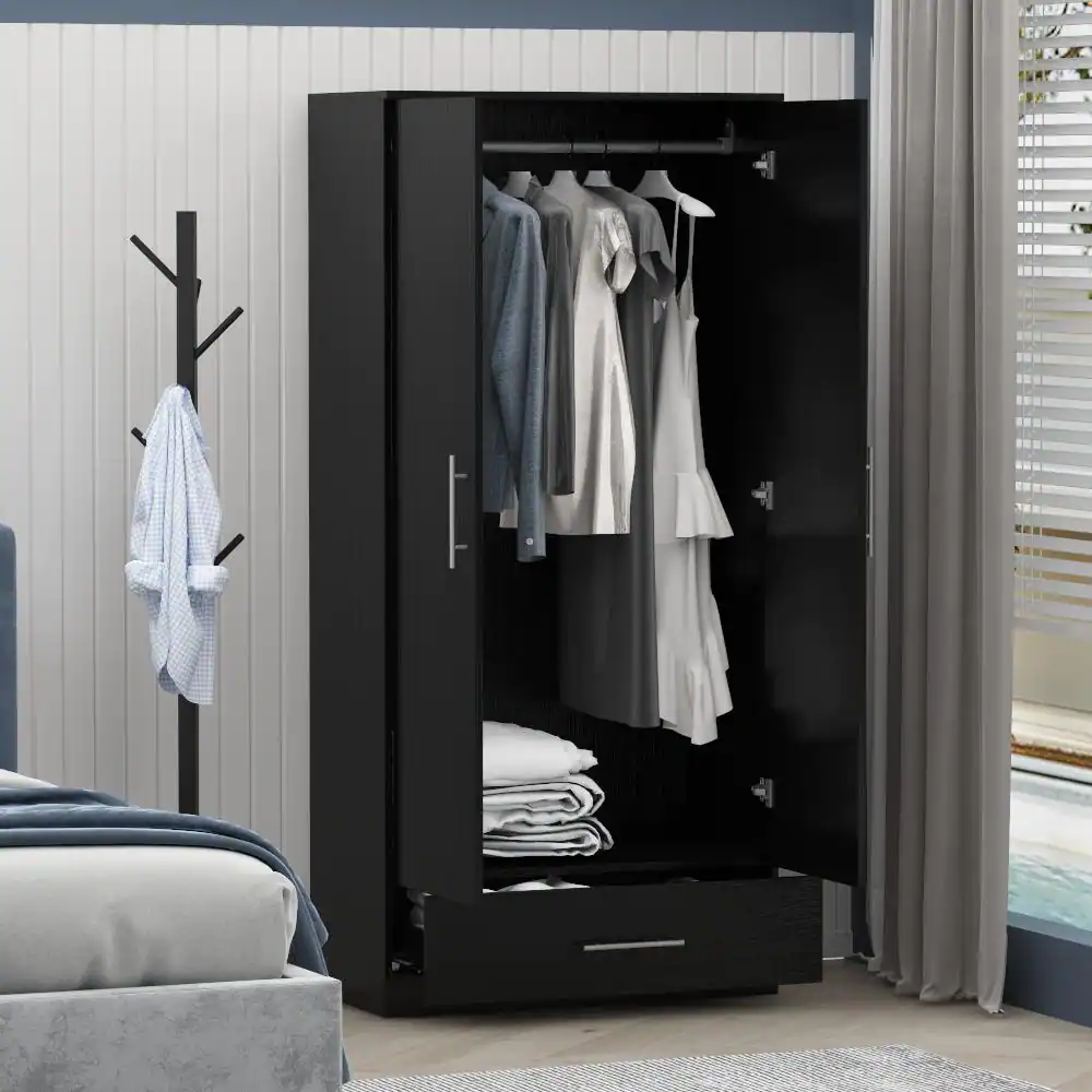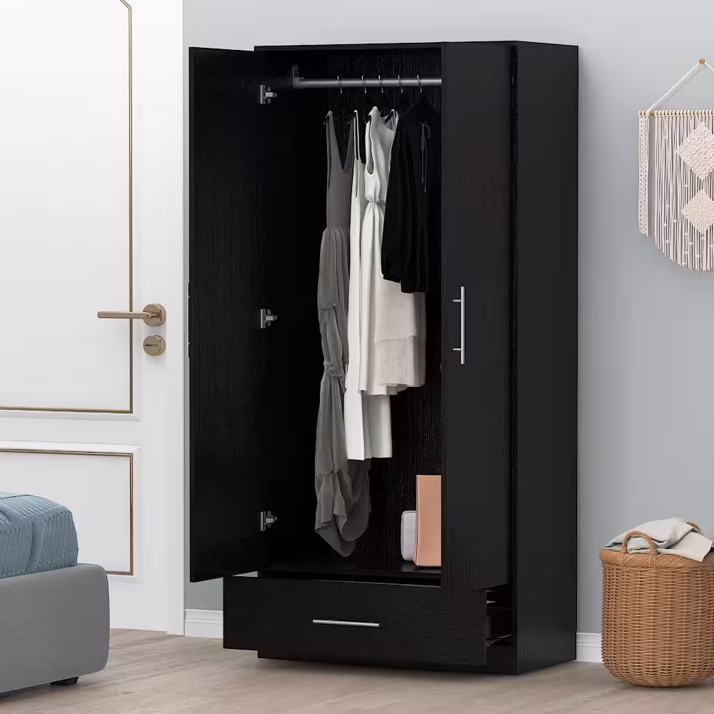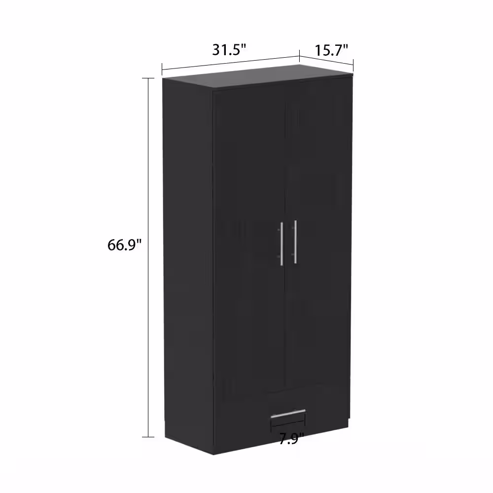 FUFU&GAGA Black 2-Door Wardrobe Armoire with 1-Drawers and Hanging Rod 66.9 in. H x 31.5 in. W x 18.9 in. D
