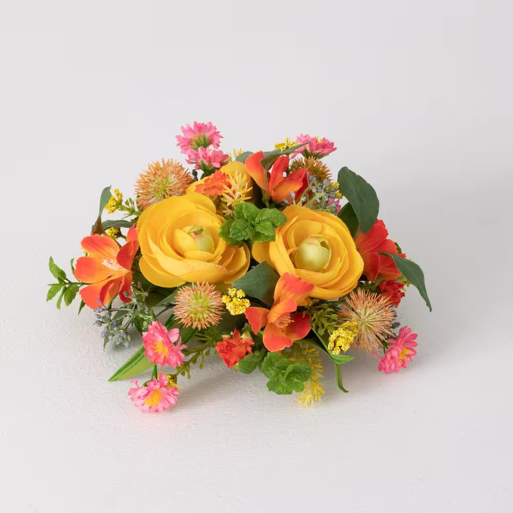 SULLIVANS 8" Artificial Blooming Orange Ranunculus and Mixed Flower Half Orb