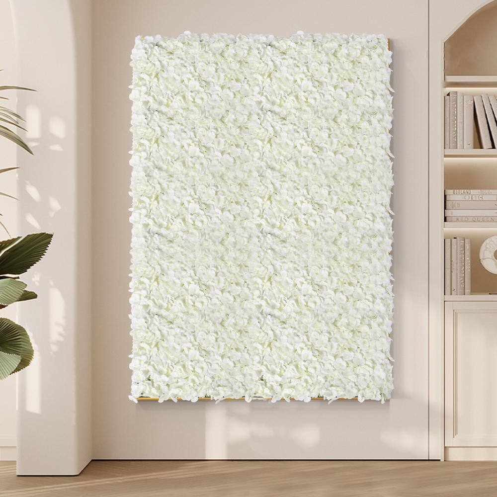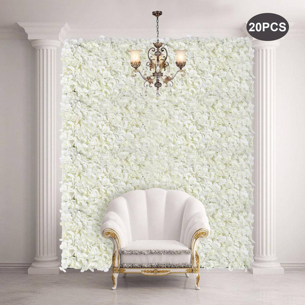None 23 .6 in. x 15.7 in. Miky-white Artificial Floral Wall Panel Silk Fabric Hydrangea Backgdrop Decor (20-pieces)