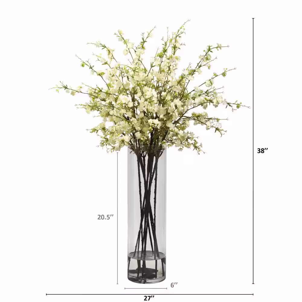 Nearly Natural 16 in. Artificial H White Phalaenopsis Silk Flower Arrangement