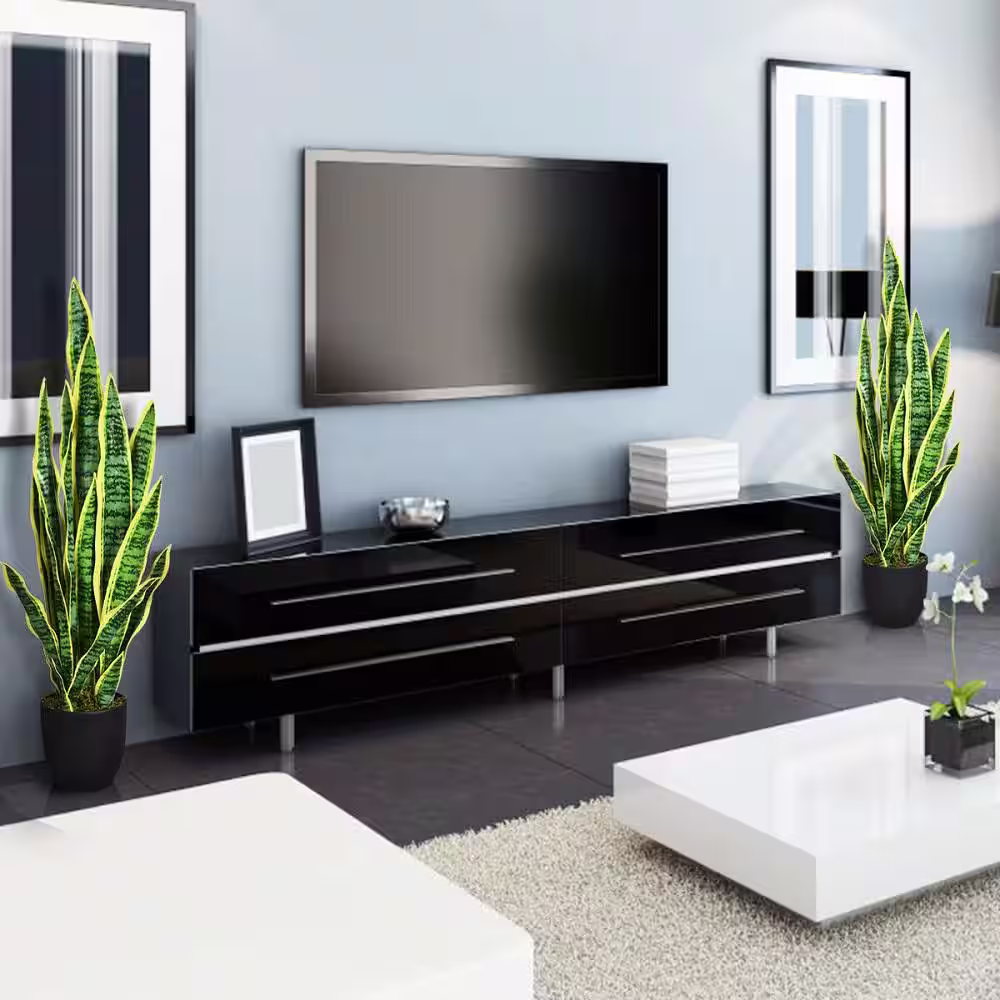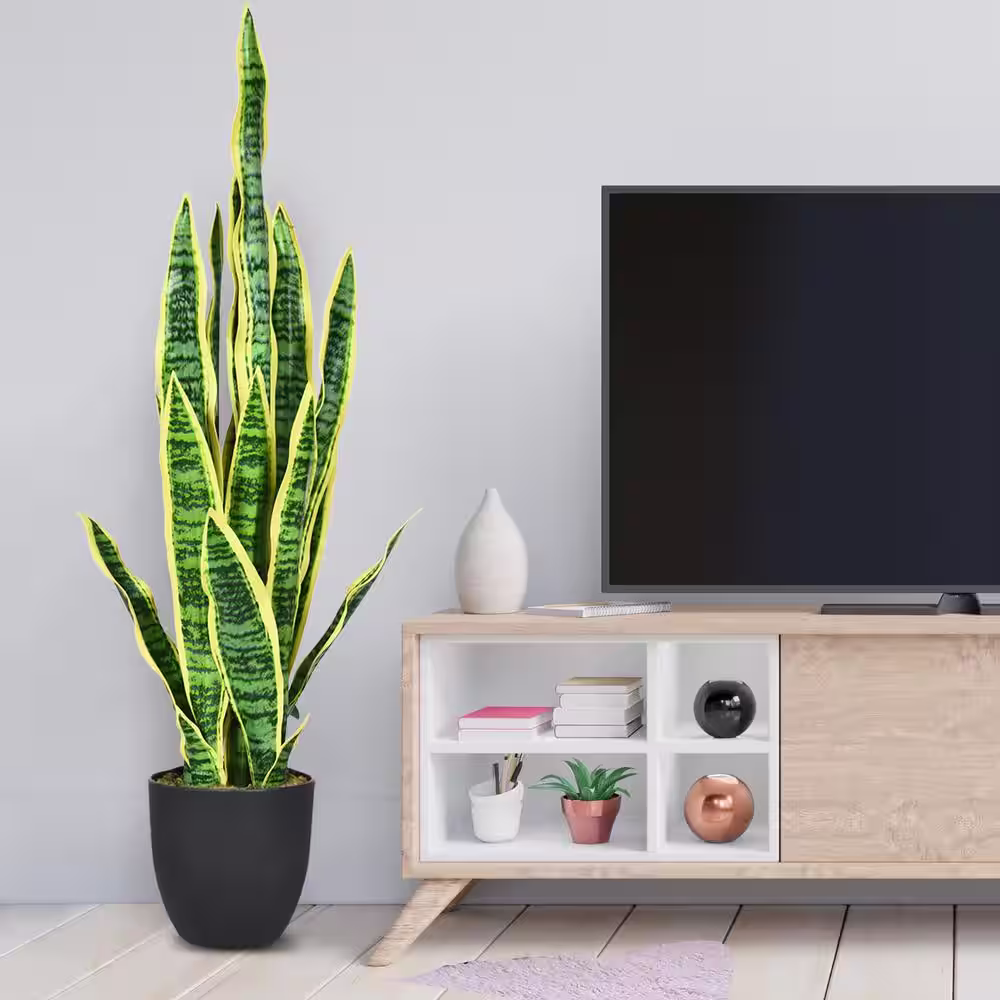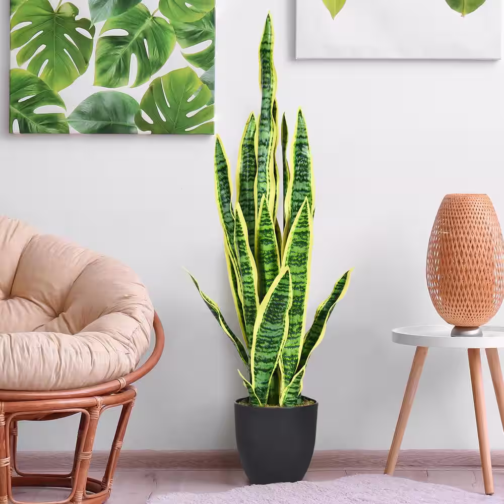 Gymax 35.5 in. Artificial Snake Plant Fake Sansevieria Indoor-Outdoor Decoration Yellow