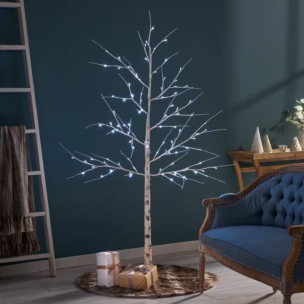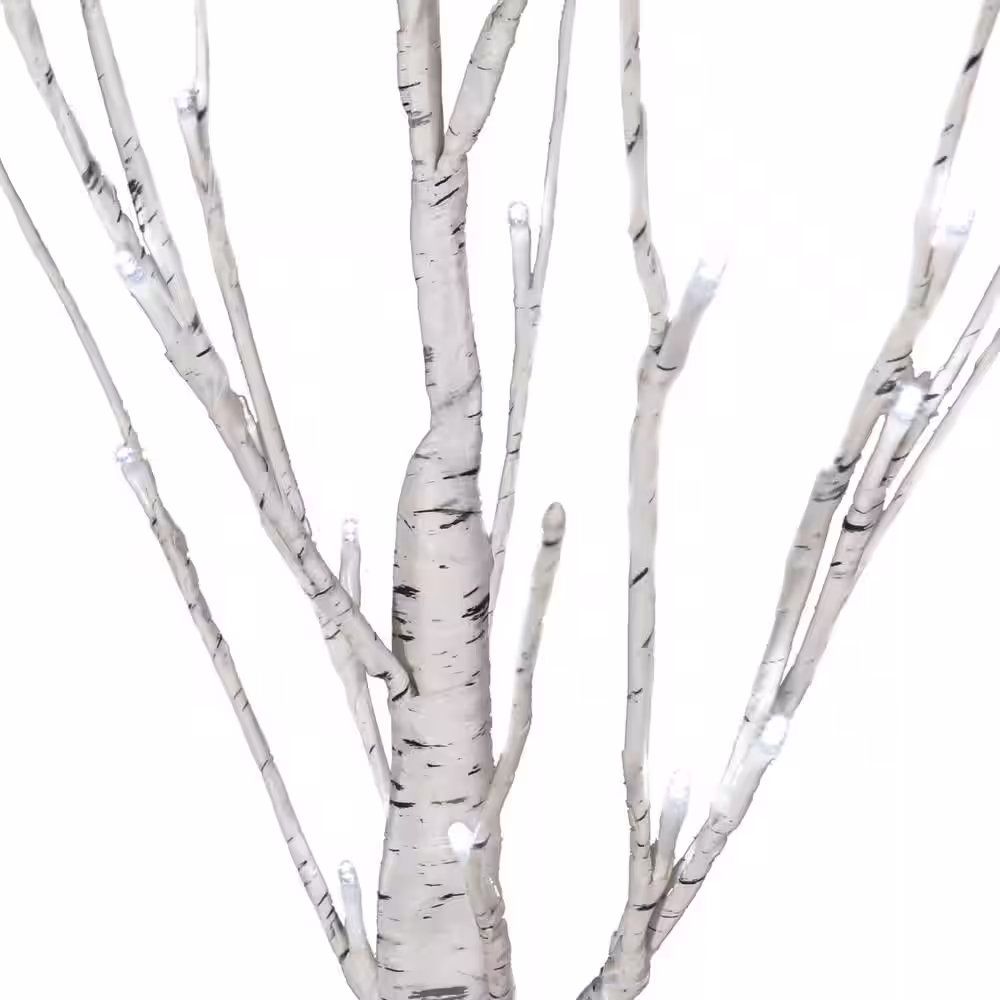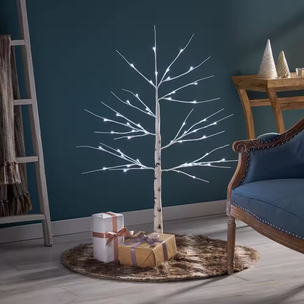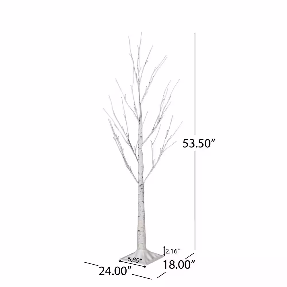 Noble House Frances 4 ft. Pre-Lit White Artificial Twig Birch Tree with 48 White LED Lights