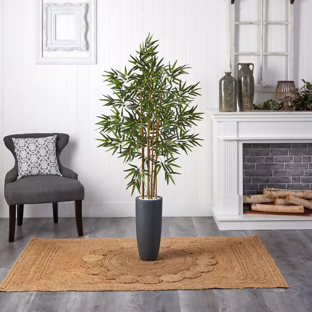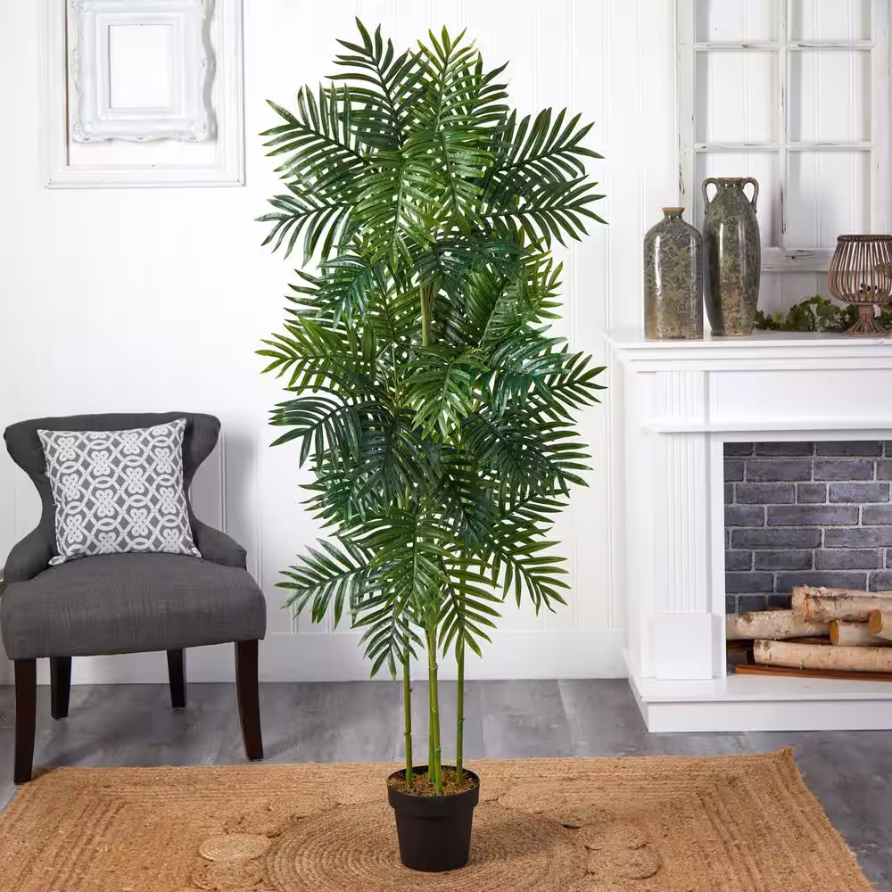 Nearly Natural Indoor 7 ft. Golden Cane Artificial Palm Tree in Decorative Planter