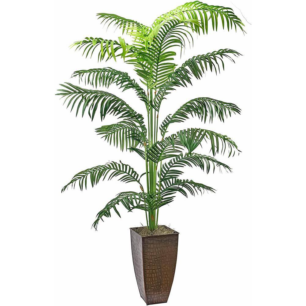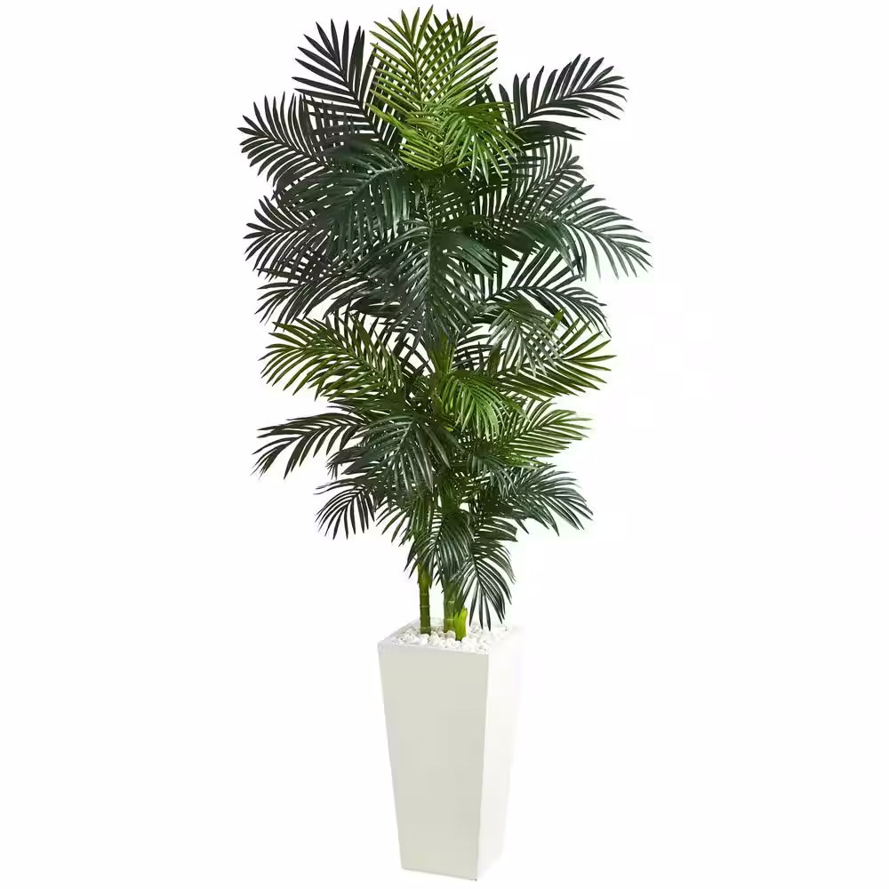 Nearly Natural Indoor Golden Cane Palm Artificial Tree in White Tower Planter