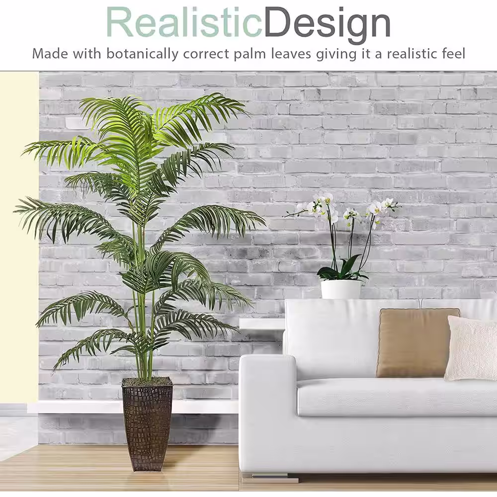 Nearly Natural Indoor 5 ft. Areca Palm Artificial Tree in White Planter Real Touch