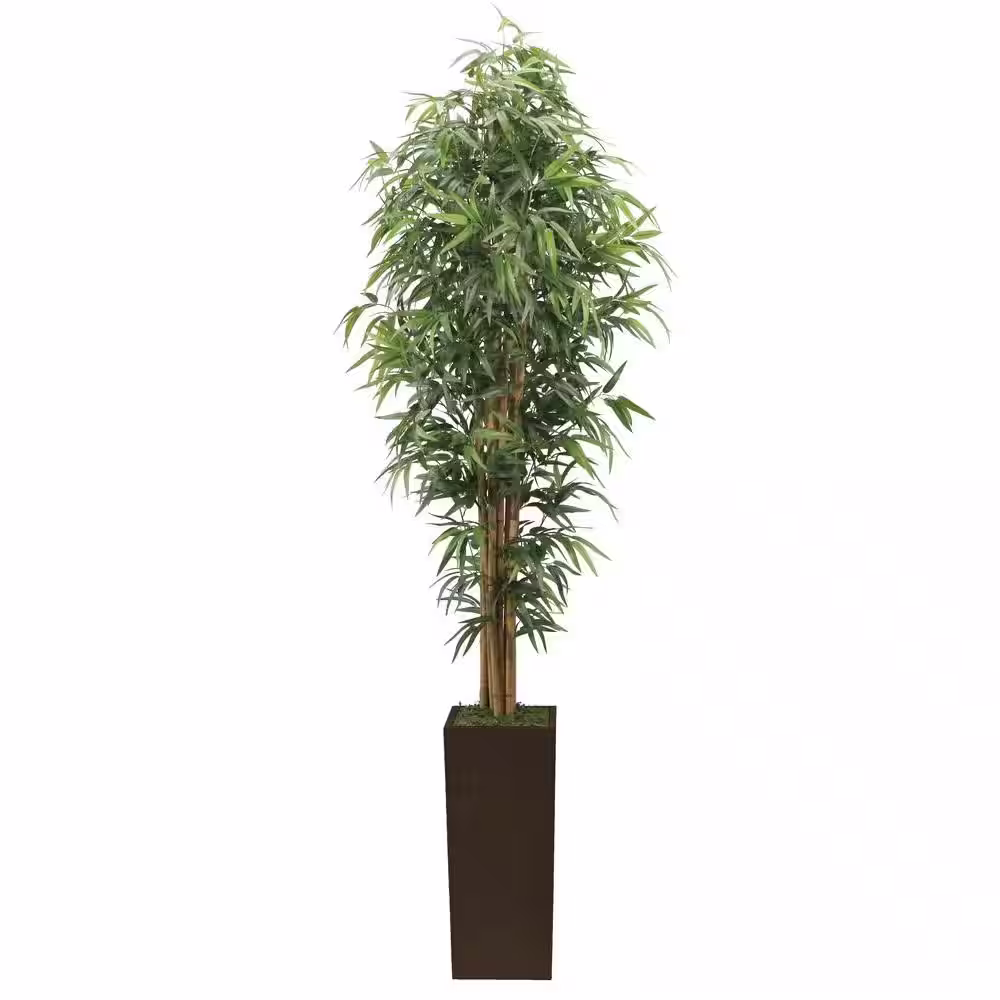 VINTAGE HOME 7 ft. Artificial Tall High End Realistic Silk Bamboo Tree with Brown and Bronze Wood Planter