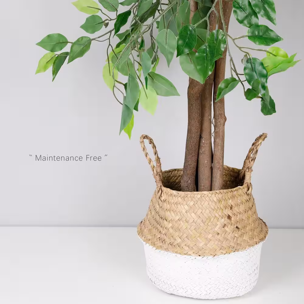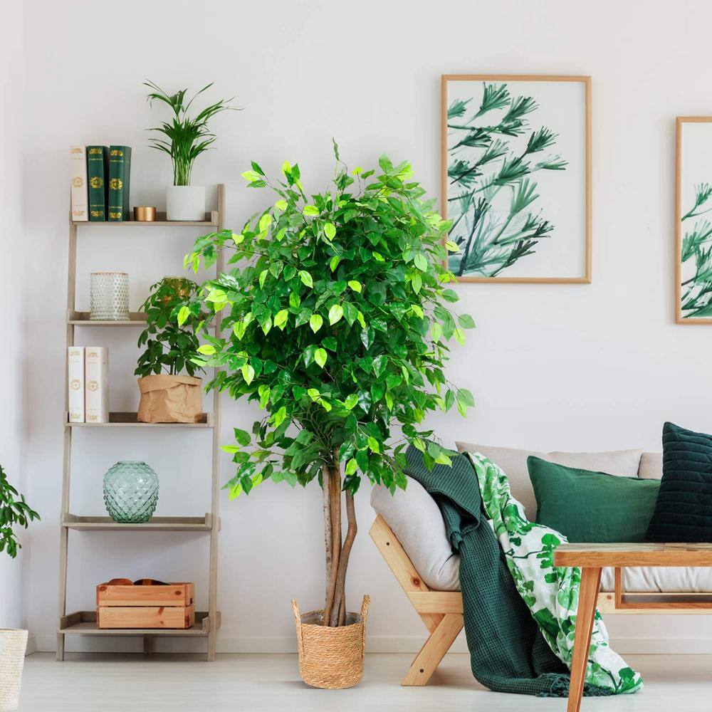 Nearly Natural 6 ft. Green Ficus Artificial Tree with Natural Trunk in Handmade Natural Jute and Cotton Planter