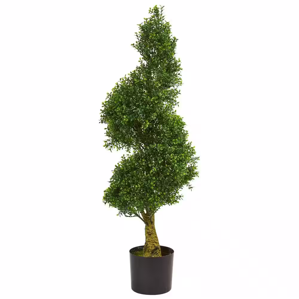 Nearly Natural 4 ft. UV Resistant Indoor/Outdoor Spiral Boxwood Artificial Tree
