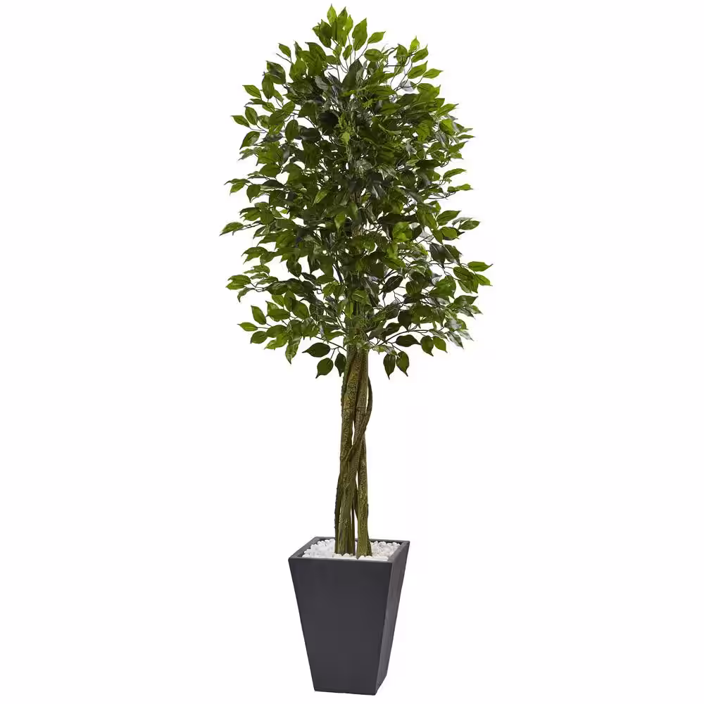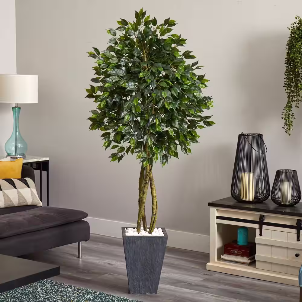 Nearly Natural Indoor/Outdoor Ficus Artificial Tree with Slate Planter, UV Resistant