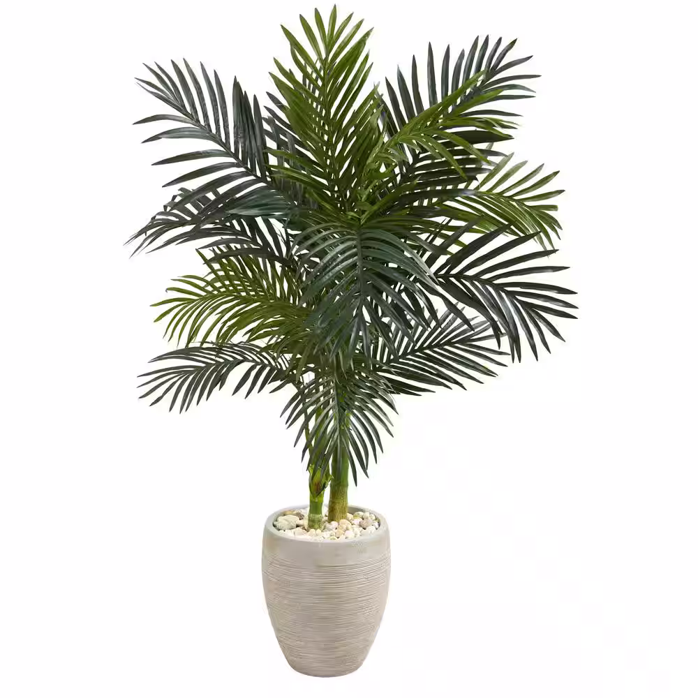 Nearly Natural 4.5 ft. High Indoor Golden Cane Palm Artificial Tree in Oval Planter