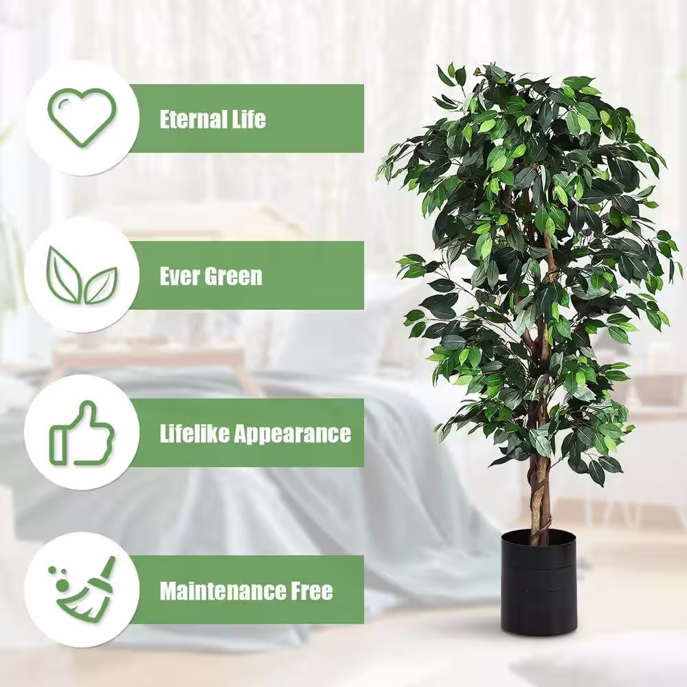 ANGELES HOME 6 ft. Green Indoor Outdoor Decorative Artificial Ficus Tree Plant in Pot, Faux Fake Tree Plant