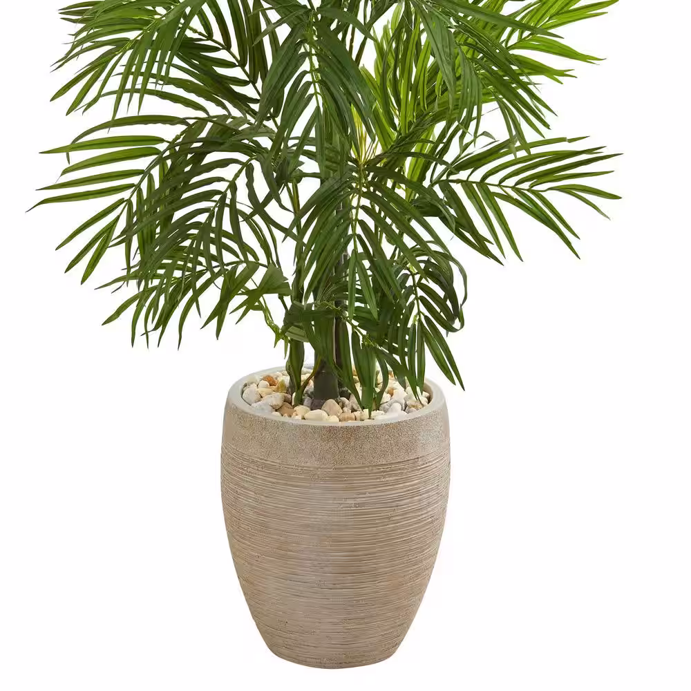 Nearly Natural Indoor 5 ft. Areca Palm Artificial Tree in Sand Colored Planter