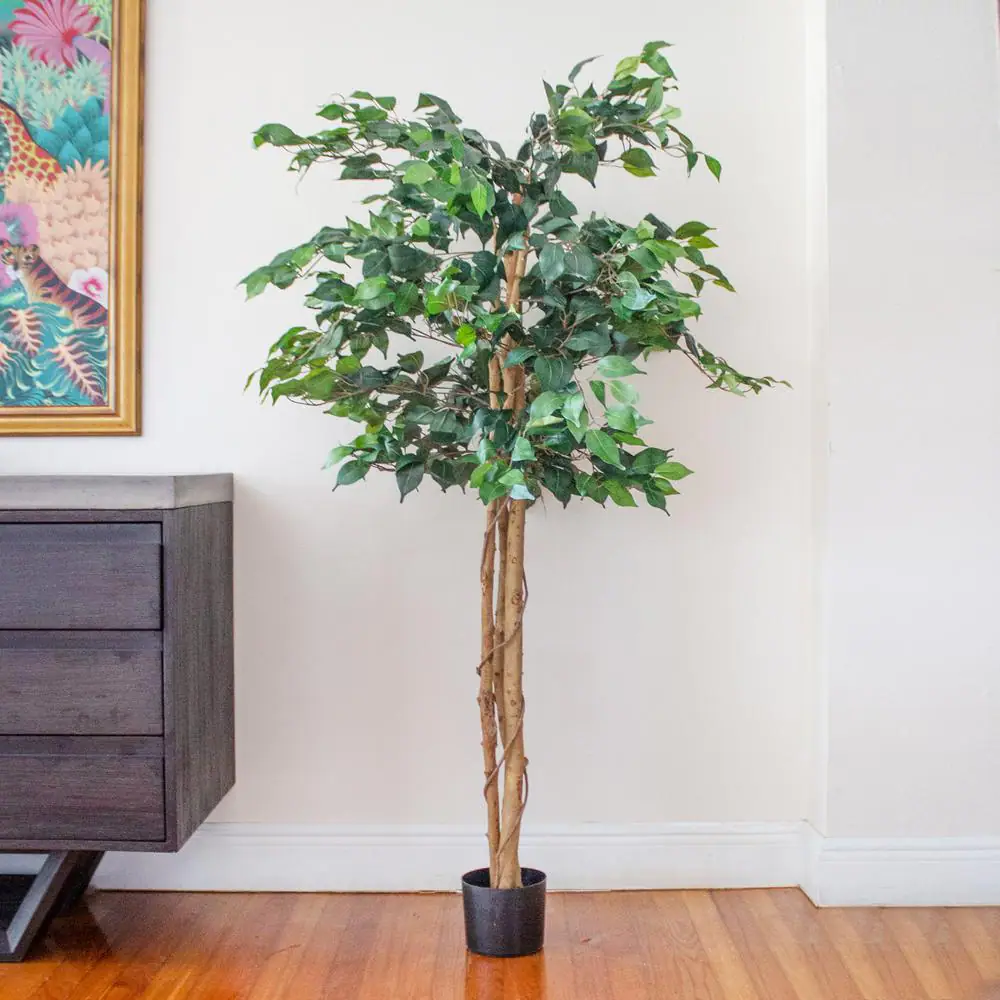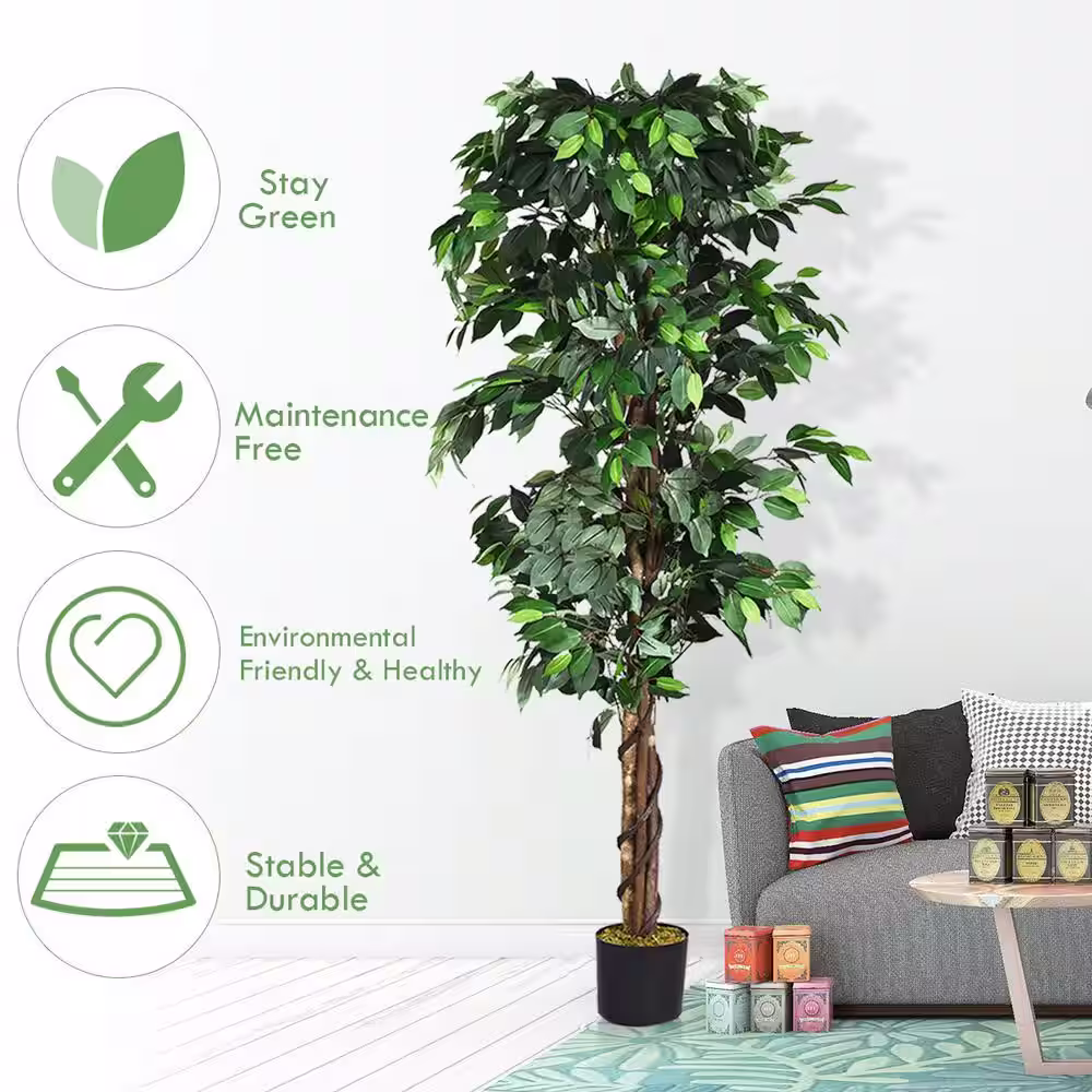 HONEY JOY 72 in. Green Artificial Ficus Silk Tree Faux Potted Greenery Ficus Plants Decorations in Pot