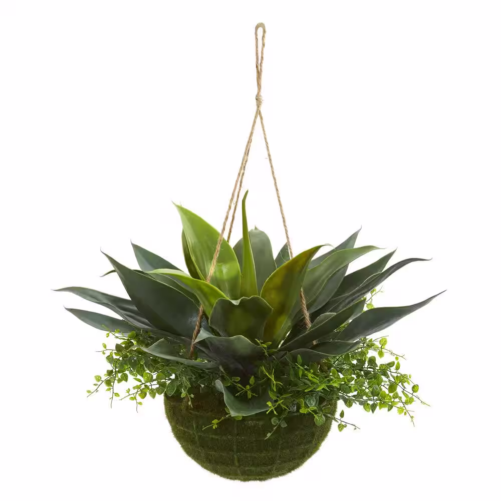 Nearly Natural Indoor/Outdoor Agave and Maiden Hair Artificial Plant in Hanging Basket
