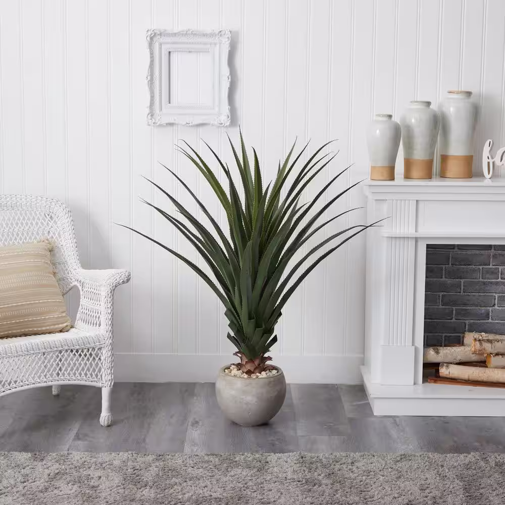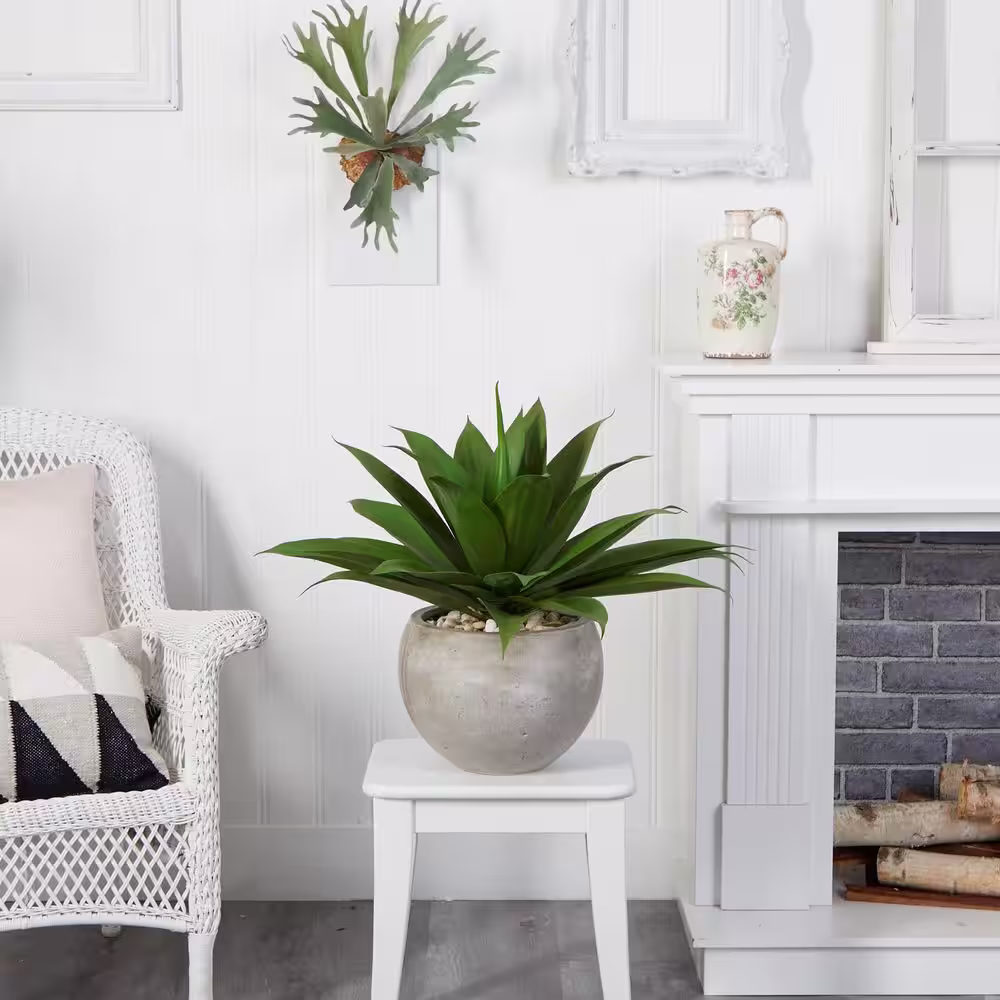 Nearly Natural Indoor 24 in. Agave Artificial Plant in Sand Colored Bowl