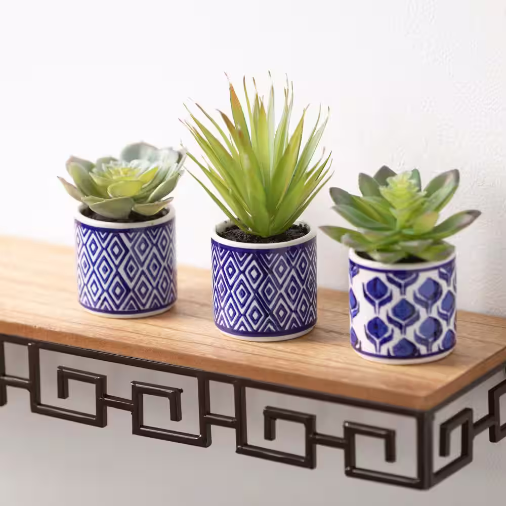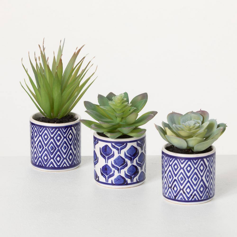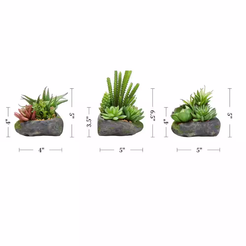 Pure Garden Artificial Succulent Plant Arrangements in Assorted Sizes (Set of 3)