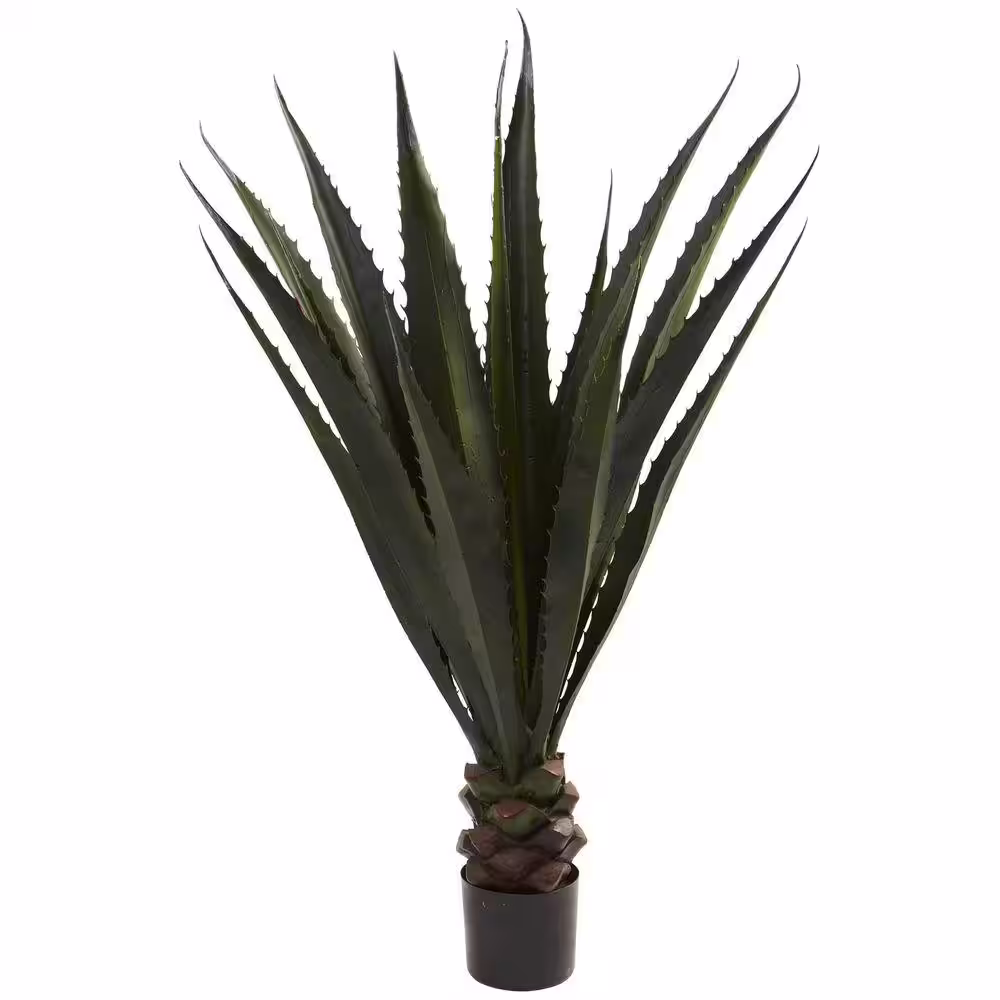 Nearly Natural 5 ft. Spiky Agave Artificial Plant in White Tower Planter